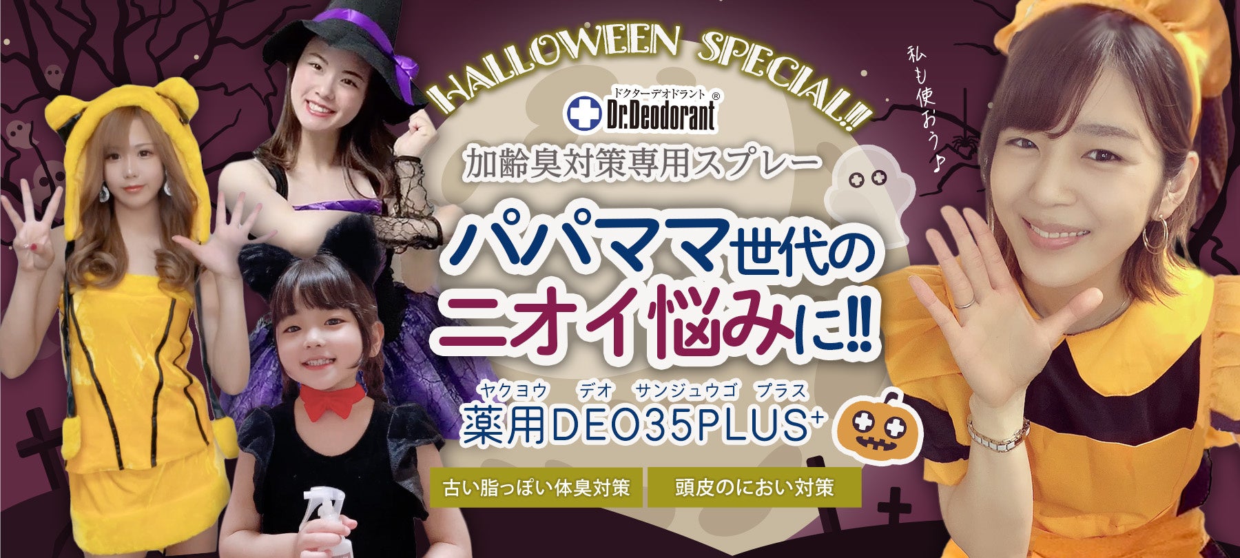 ママインフルエンサーがおすすめする、加齢臭対策スプレー「薬⽤デオ35プラス」とは? 人気のCMシリーズ第3弾「ハロウィン編」が配信開始!