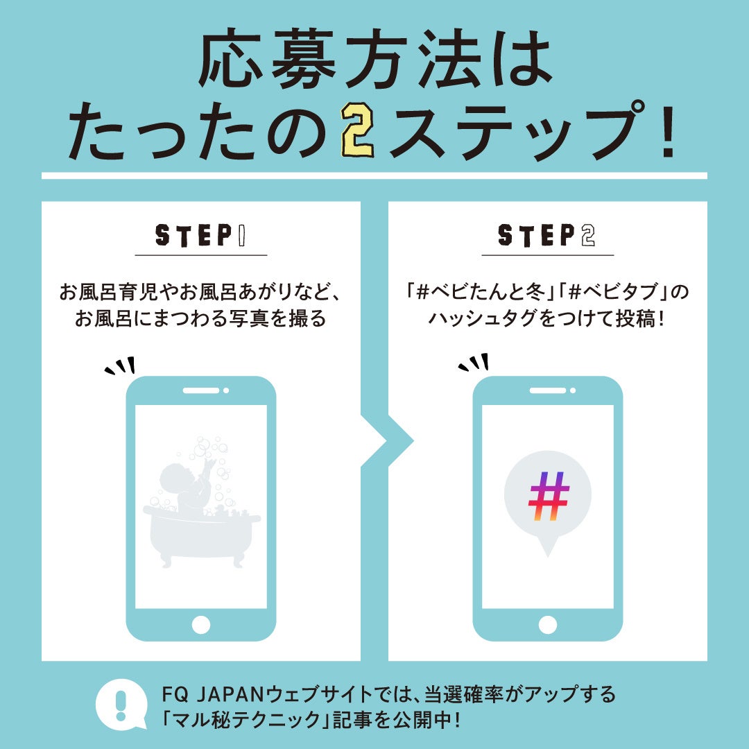 赤ちゃんから一緒に使える重炭酸入浴剤「Babytab(ベビタブ)」を企画・販売するビースタニング株式会社(本社:東京都渋谷区、代表取締役:齋藤洋一)は、2021年12月17日より父親の子育て雑誌「FQ JAPAN」とコラボした冬のフォトコンテストを開催します。
