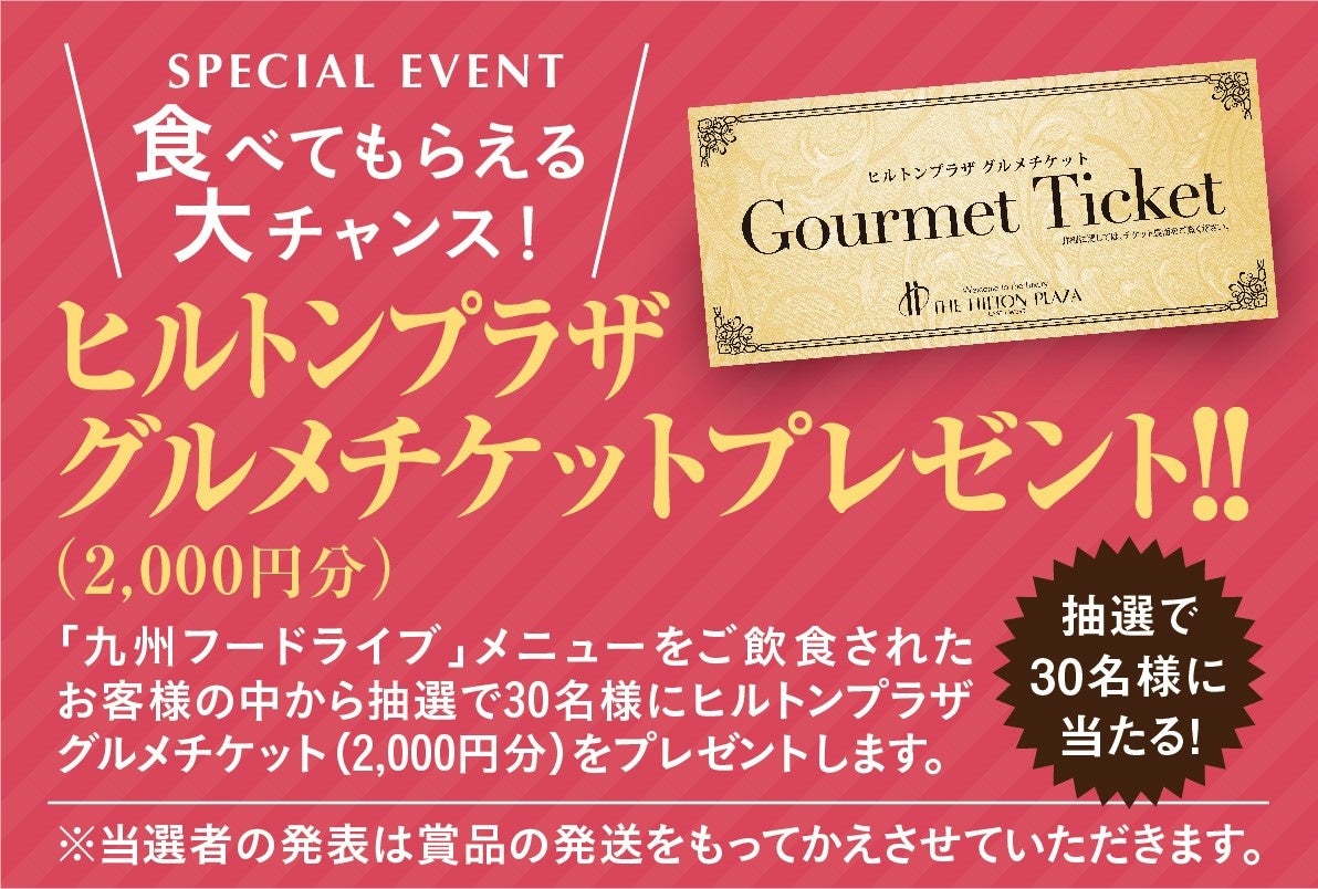 「九州フードライブ」期間中は、オープニングイベントからグルメチケットプレゼントまで実施いたします。