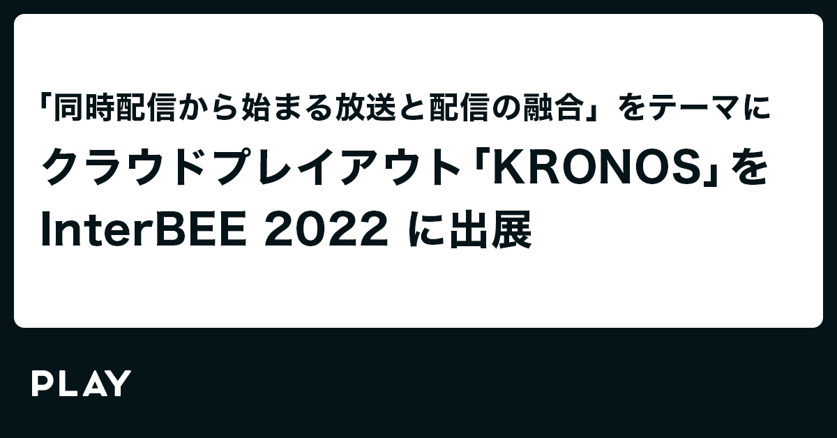 動画配信プラットフォームサービスを提供している株式会社PLAY(東京都渋谷区、代表取締役社長 黒田和道、以下:PLAY)は、2022年11月16日(水)~18日(金)幕張メッセで開催される国際放送機器展「Inter BEE 2022」に出展します。