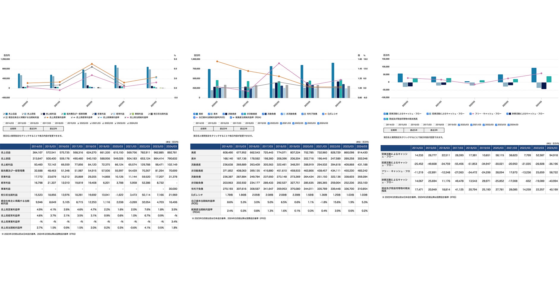 【財務三表のデータを各詳細グラフで提供する表示事例】