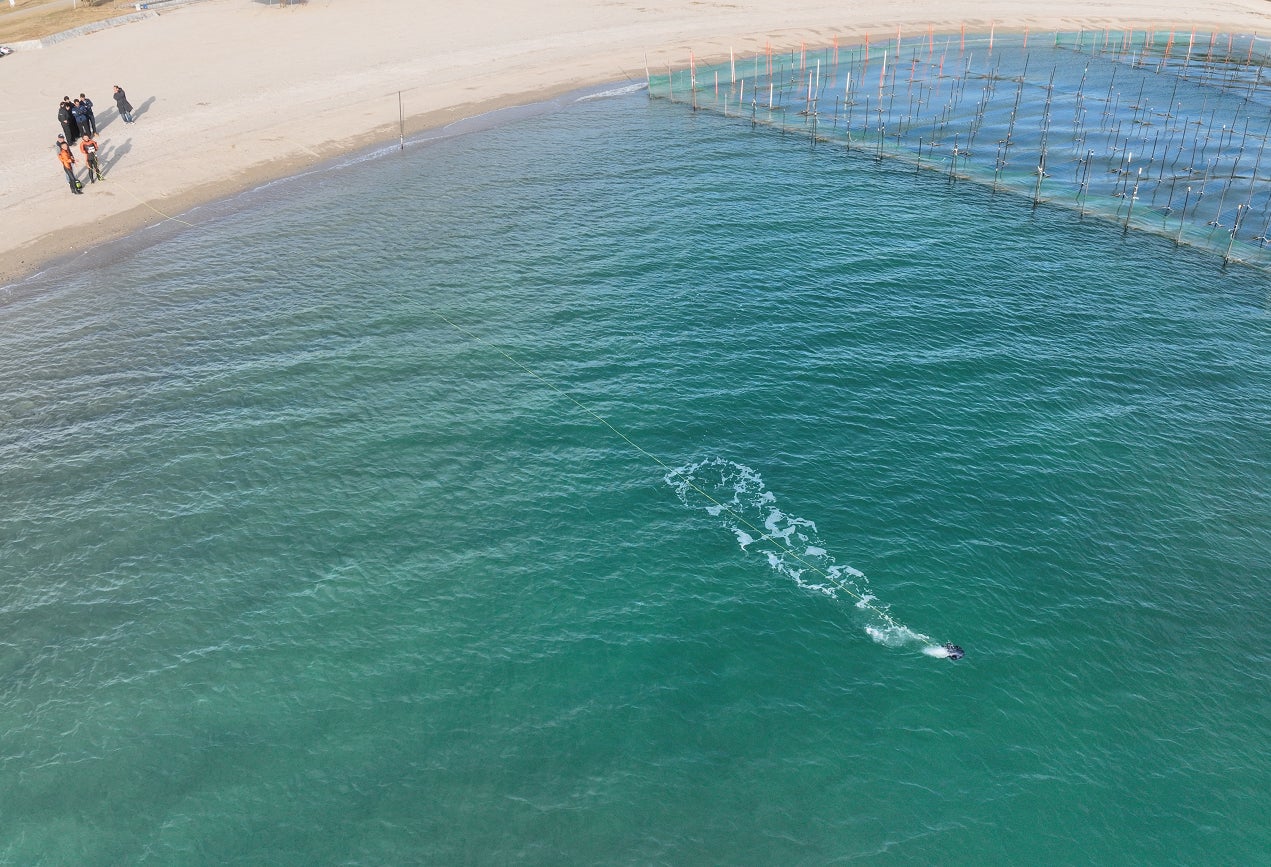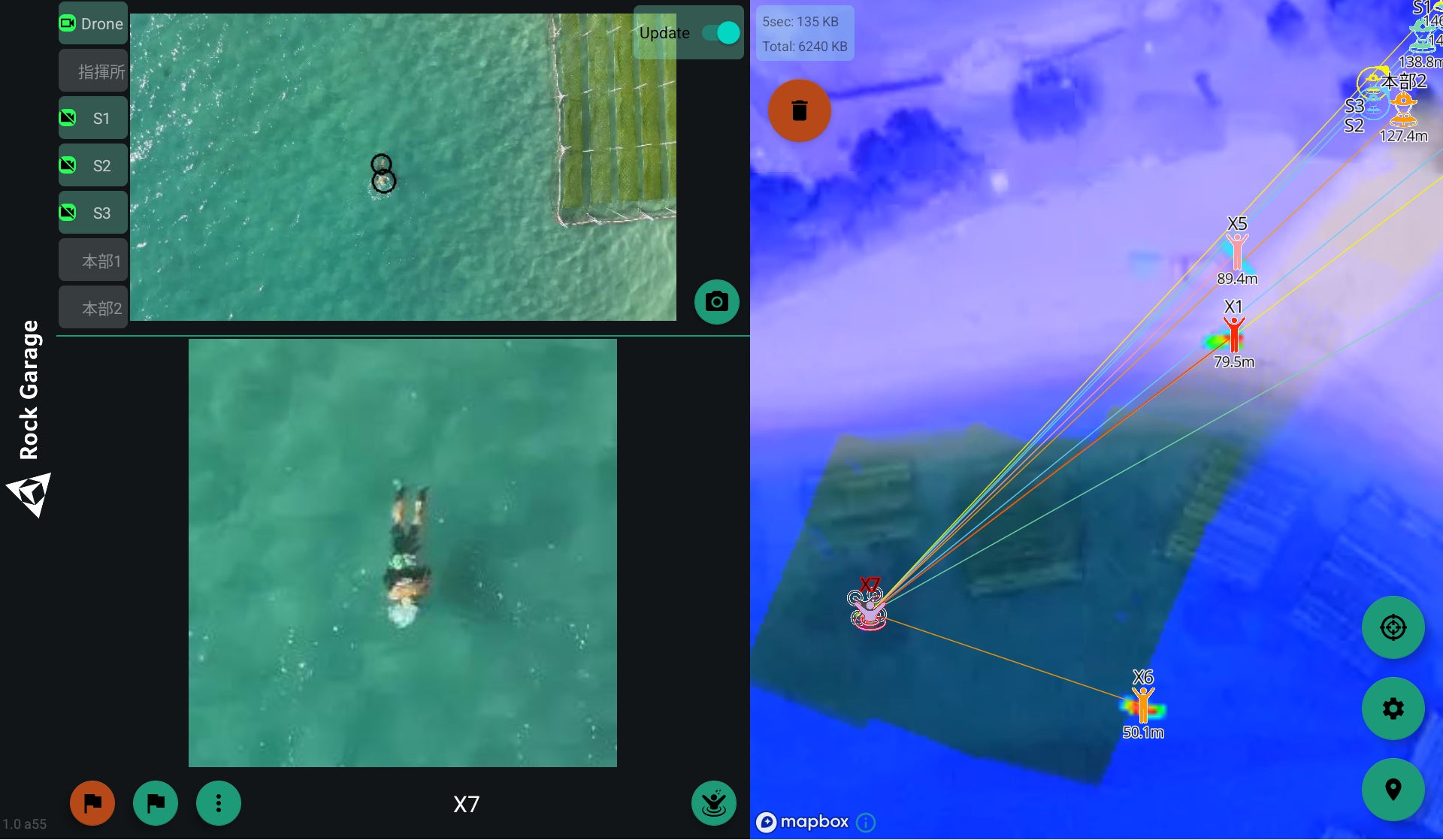 海上からは、隊員がドローンによる捜索を行います。ドローンはプログラミングされた経路を自動飛行します。