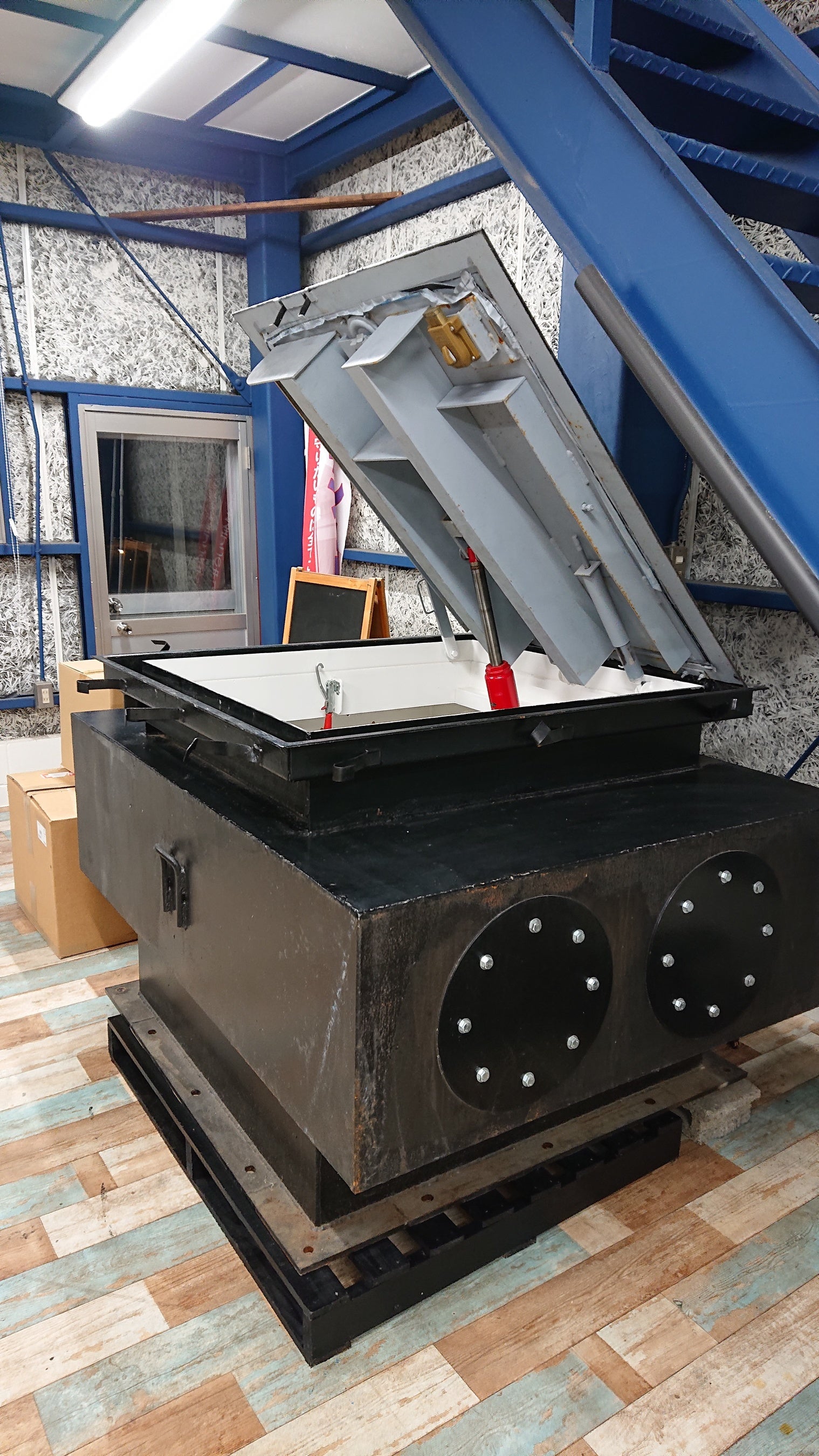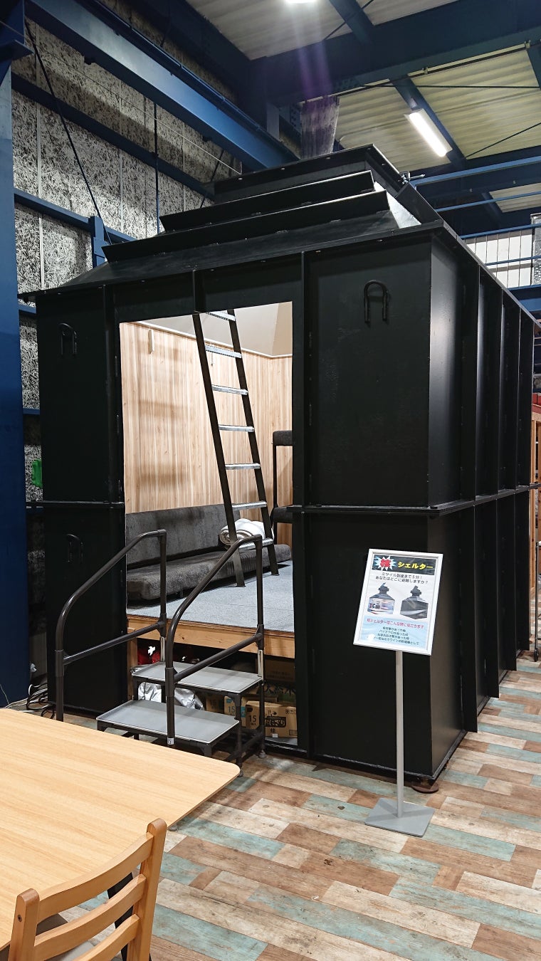 シェルターは、米国製で高さ4.4m、縦3m、横2.4m