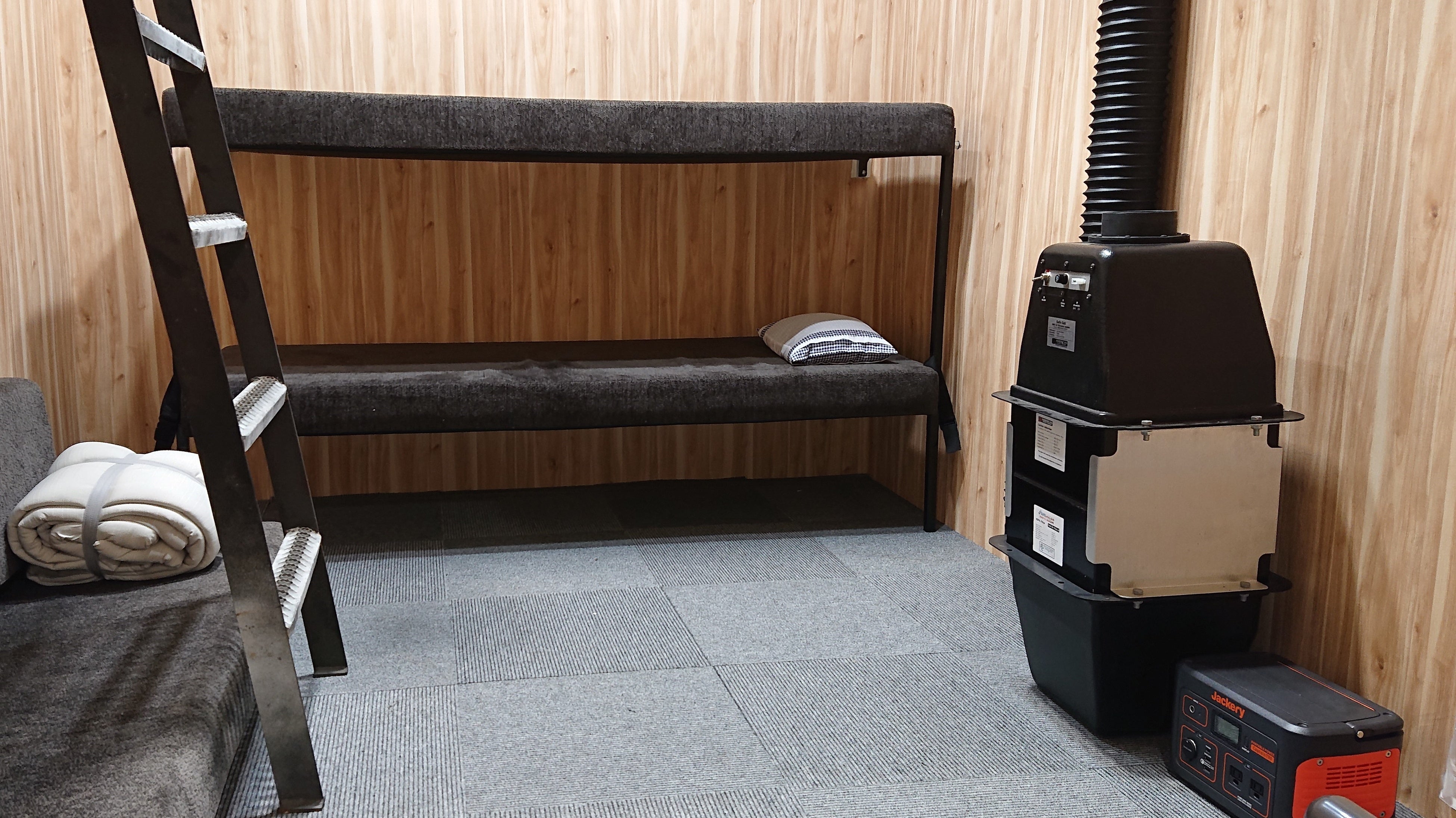 広さは、約4.5畳の空間にベットと放射線物質など除去できる空気清浄機などが備え付けられている。