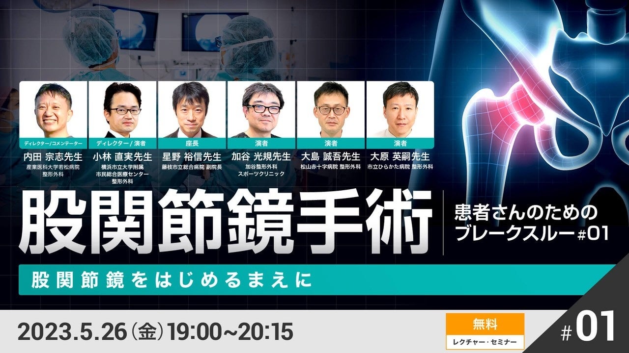 股関節鏡は人類の身体の中で最も深い位置に存在する関節であり、関節鏡視下手術は難しい手技とされていました。この15年で股関節鏡視下手術は飛躍的に進歩し、いままで難治とされてきた股関節痛を改善させるツールとして期待されます。また関節内だけでなく関節外や殿部までもアプローチできるほど発展してきています。現場の医師はその最新技術を習得するのにテキスト情報だけでは習得が難しいため、手術室まで見学にいくのが主な手段であり、学ぶ機会が圧倒的に少なすぎるという問題がありました。さらに新型コロナウイルスパンデミック後は手術室への訪問さえ難しくなりました。そのため全国各地にいるエキスパート医師の手術・手技動画を見て学ぶことへのニーズはとても高いと言われています。本シリーズは全5回配信され、初回は、内田 宗志先生(産業医科大学若松病院 整形外科)と小林 直実先生(横浜市立大学附属市民総合医療センター 整形外科)がディレクターとなり、これから股関節鏡手術をはじめようとお考えの整形外科専門医の方々に向けて、スキルアップしていただける内容でご講演いただきます。今後も第一線で活躍されている医師がディレクターとなり質の高いコンテンツを配信していくことで学びの機会を増やし、医療格差をなくすことを目指します。そして企業様にとってもe-casebook LIVEプラットフォームで自社製品を医師の方々にご紹介ができる機会を増やすよう努めてまいります。