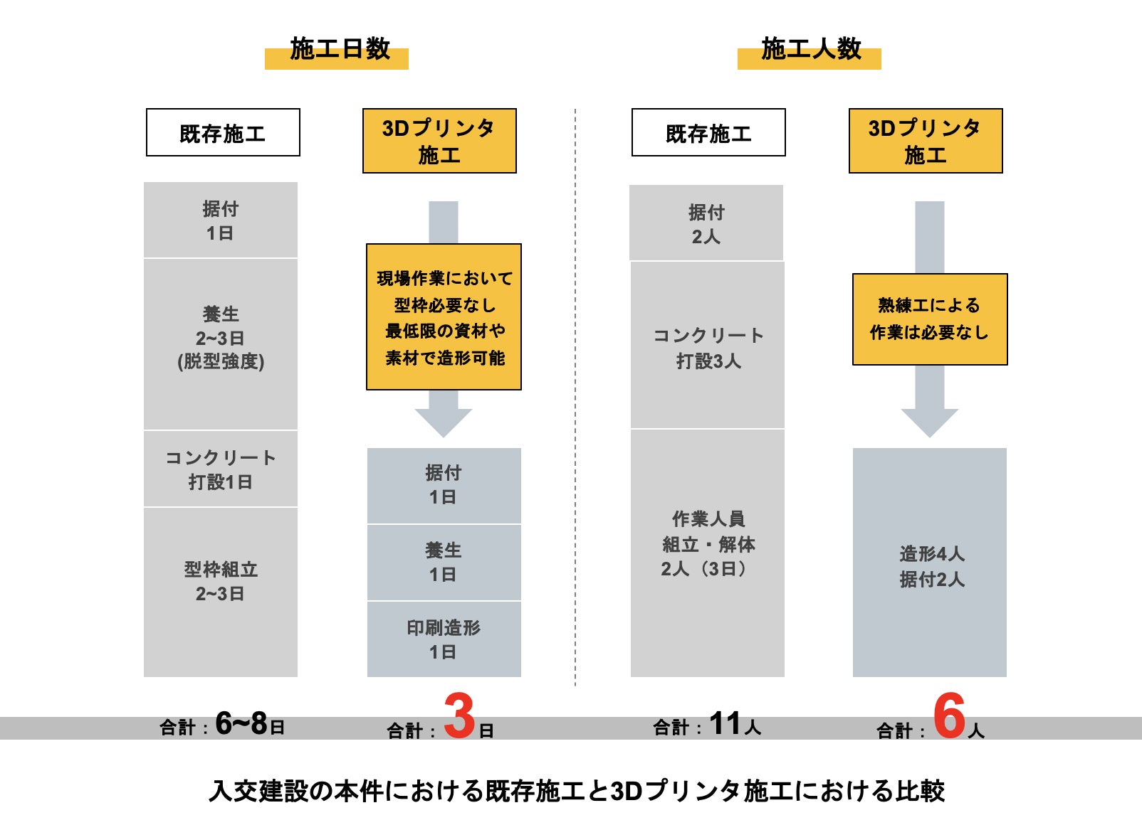 働き手不足や担い手不足というのは、建設業界の近々の課題であり、生産性向上や省人化は避けては通れない道であります。担い手不足には、やはり土木業界のイメージアップが大切であり、今回の型枠を必要としない最新技術は、その一端を担いうるものだと思い、採用を決めました。