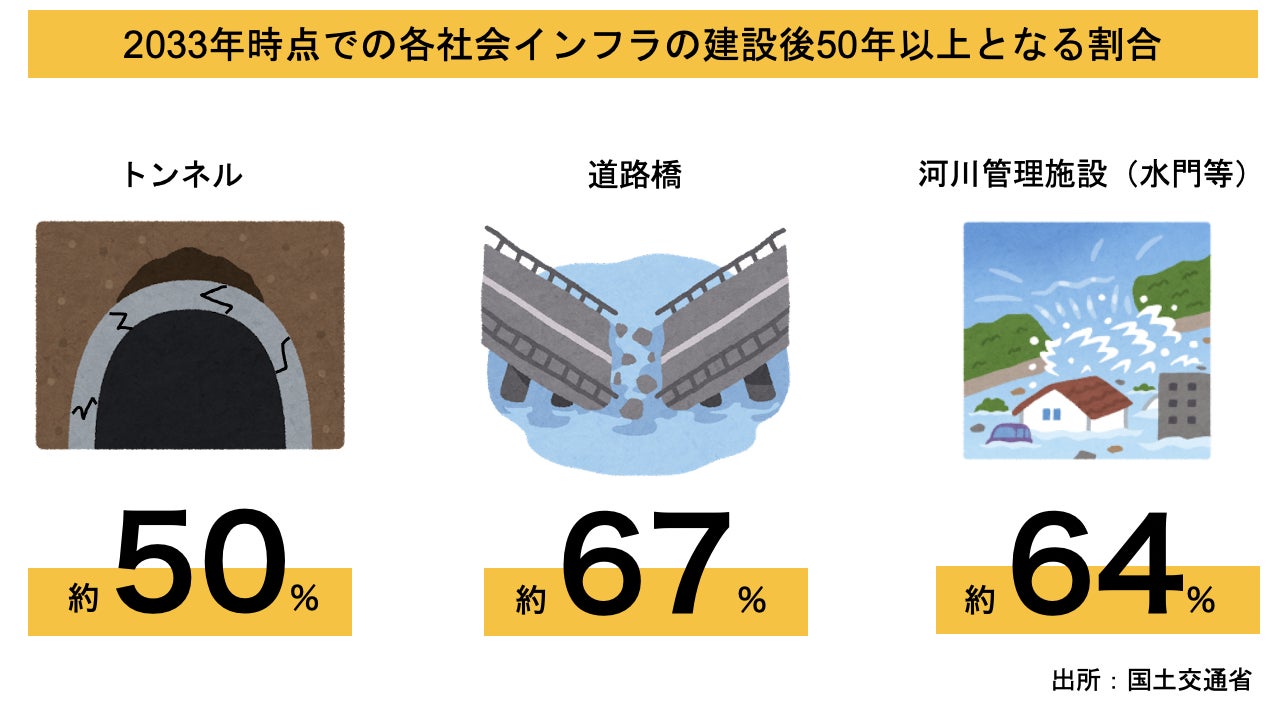更には、日本国民の生活を支える社会インフラの老朽化が急速に進んでいます。