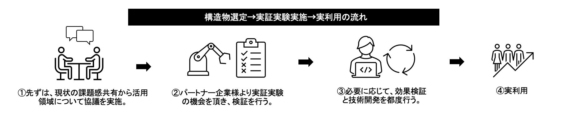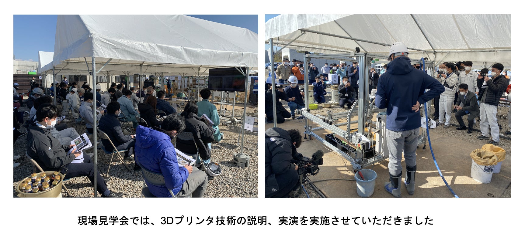 今後も建設現場における、人にしかできない生産性や重要度の高い業務へ集中する現場環境を創出し、きつい・危険・きたないを代表する3K領域を建設用3Dプリンタやロボット/重機での施工により、人とテクノロジーの共存施工を目指し、国や自治体、建設業界と共に実装を進めて参ります。