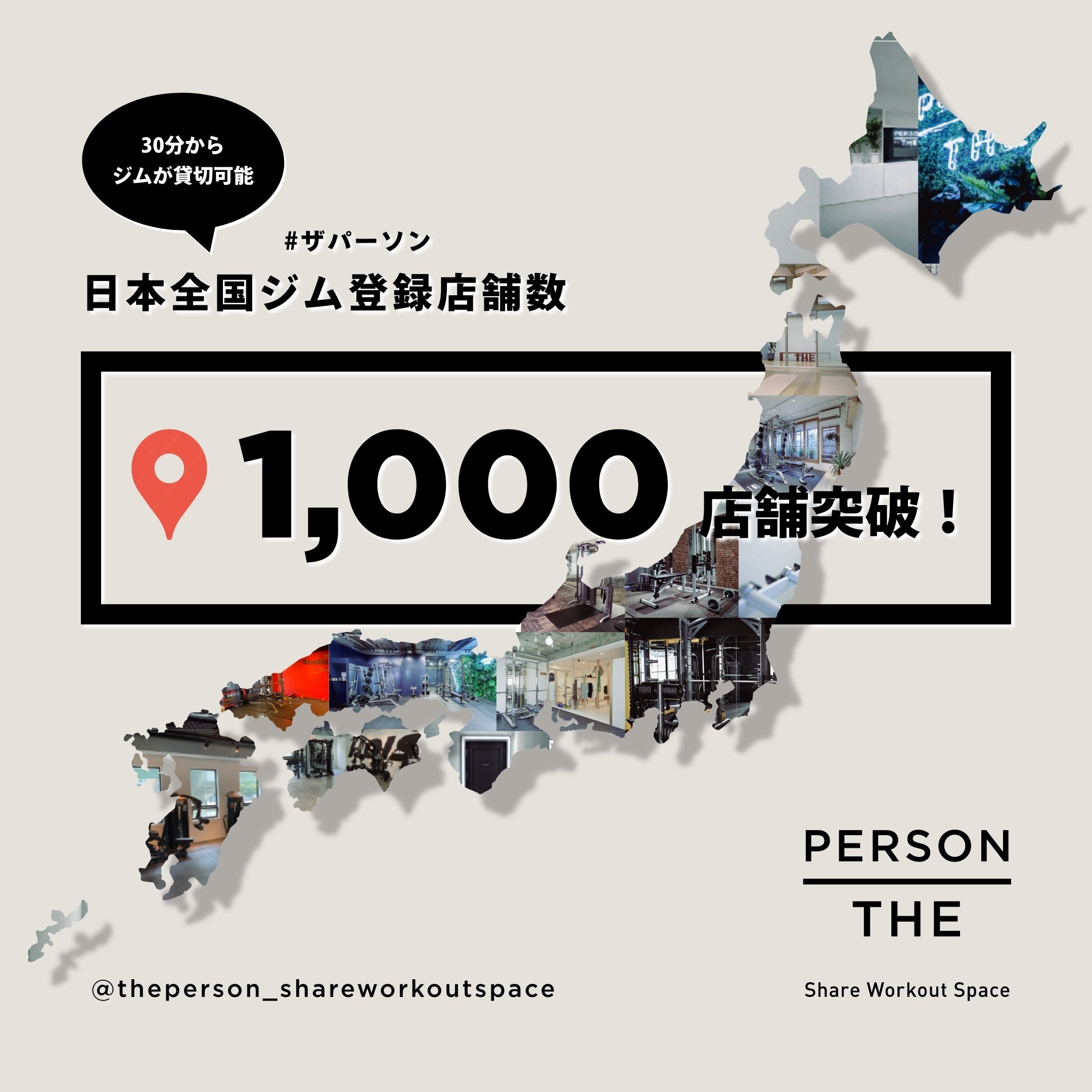 コロナ禍において10ヶ月で200%の伸び率!30分からジムを貸し切りできるレンタルジムサービス『THE PERSON』、登録ジム数が国内最大級の1000店舗を突破!