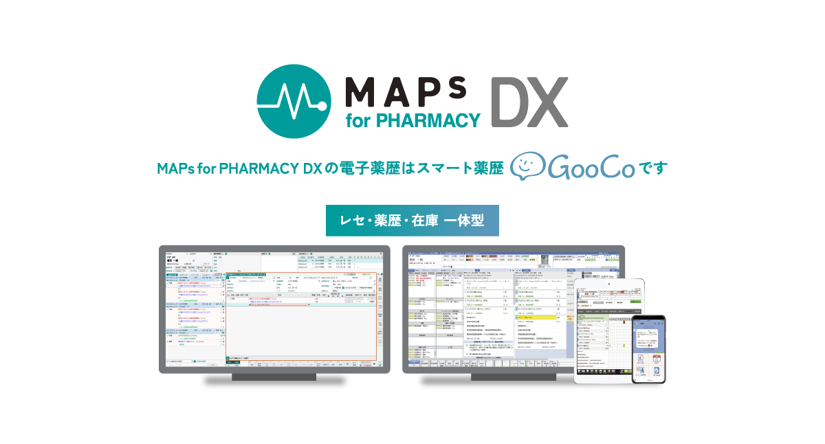 ※株式会社グッドサイクルシステムは、薬局やドラッグストア向けの業務支援システムやサービスを手がける会社です。主力プロダクトはクライアント端末にiPadを活用でき、大手薬局チェーンなどを中心に全国の約5,000店舗の薬局で活用されているスマート薬歴『GooCo(グーコ)』と株式会社EMシステムズと共同開発した、レセ・薬歴・在庫一体クラウド型薬局支援システム『 MAPs for PHARMACY DX』。