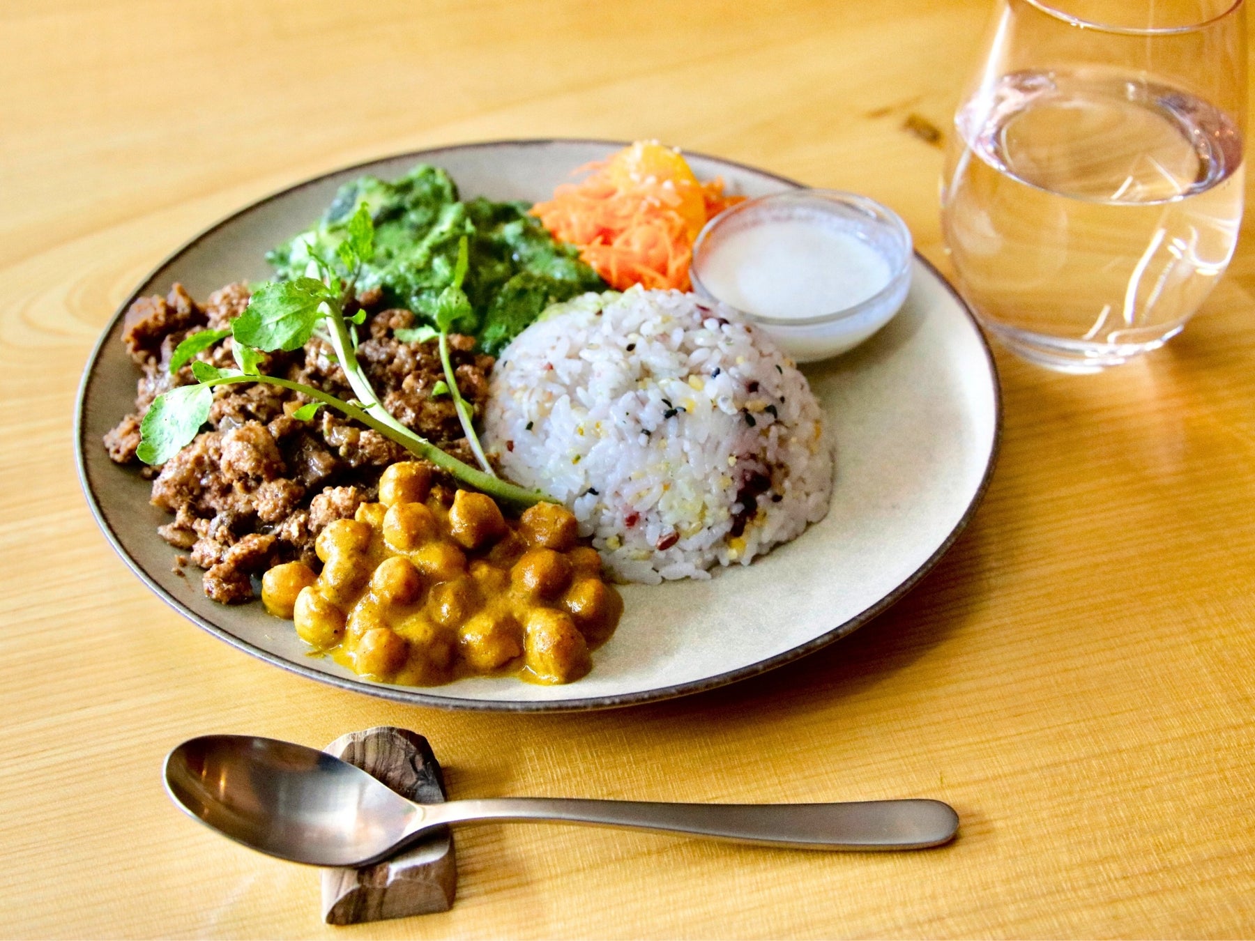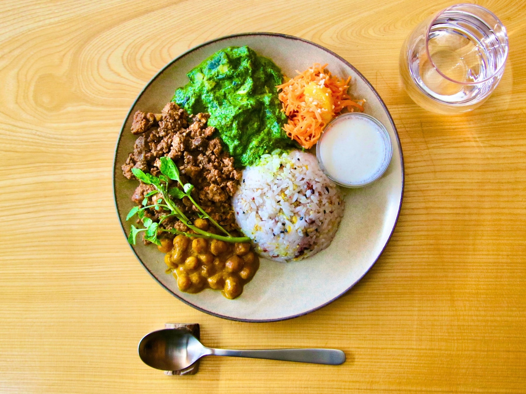 管理栄養士 井上蕗子先生の全面監修のもと「肉とワイン みなもと」の小田洋平シェフがレシピを考案した「美味しくて、1食に必要な栄養が全部摂れる※」スパイスカレーです。3色の彩り豊かなカレーとキャロットラペ、ヨーグルトソースで構成し、栄養だけでなく美味しさにもこだわりました。