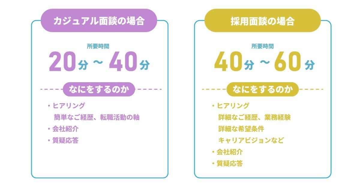 また、面接担当者だけではなく面談スタイルも「カジュアル面談」「採用面談」の2種類から選ぶことができます。