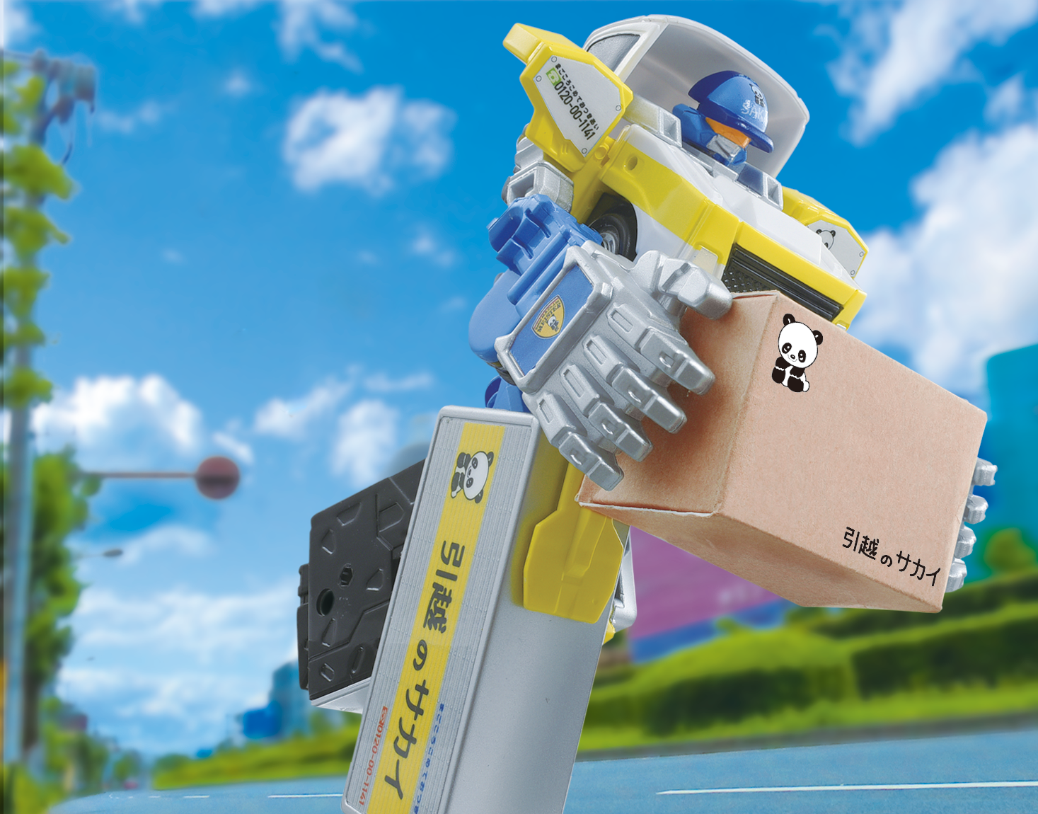 約20年ぶりに「トミカ」に「サカイ引越センター 引越トラック」が2022年12月中旬に登場!アーマートミカであるまごころパンダが描かれたお馴染みの引越トラックが引越ジョブロイド「kokoro」くんと合体し、サカイ引越センターのロボット「キャリーブレイバー サカイ引越センター 引越トラック」に変身します。また、WEBアニメ(11月中旬配信予定)にも、まごころこめて大切に運ぶkokoro君が登場。ぜひ合わせてお楽しみ下さい