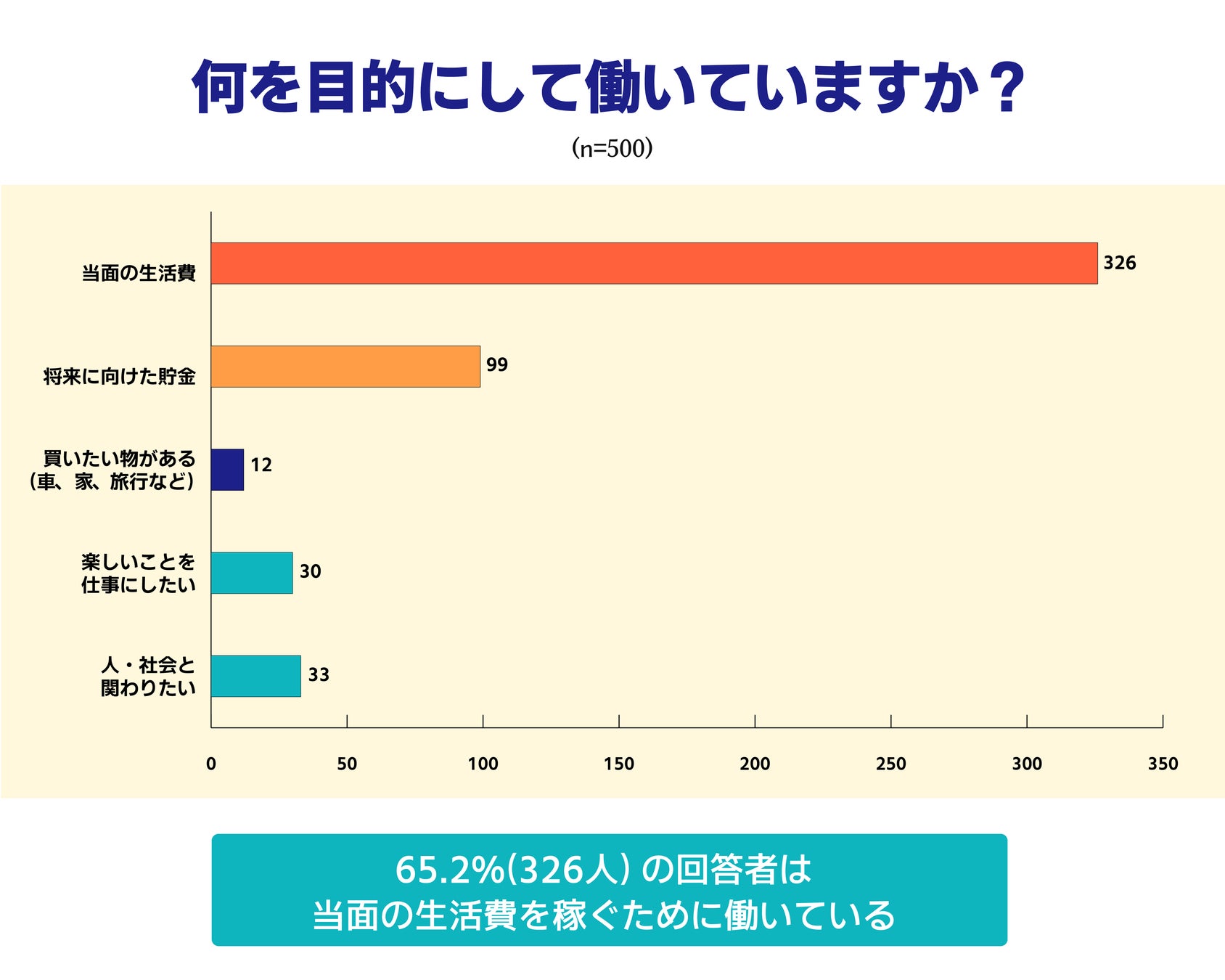 集計の結果、65.2%の回答者は「当面の生活費」を目的に働いていました。