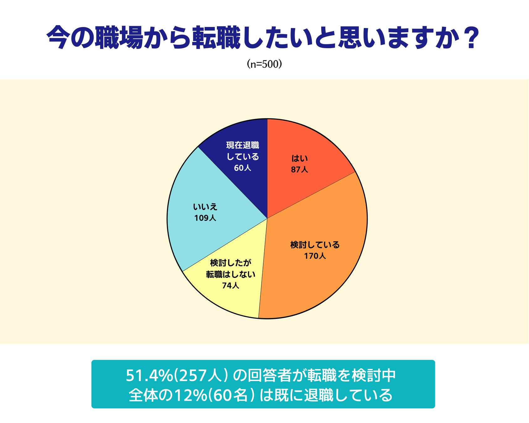 回答者500人に対して、現在の職場から転職する意思があるかどうかを質問しました。