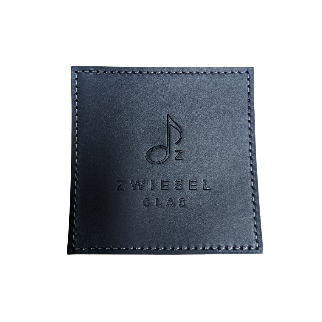 「姫路の革」製オリジナルコースターは、中央にツヴィーゼルグラスのロゴが刻印されたブラックの高級感漂う革製のコースターです。