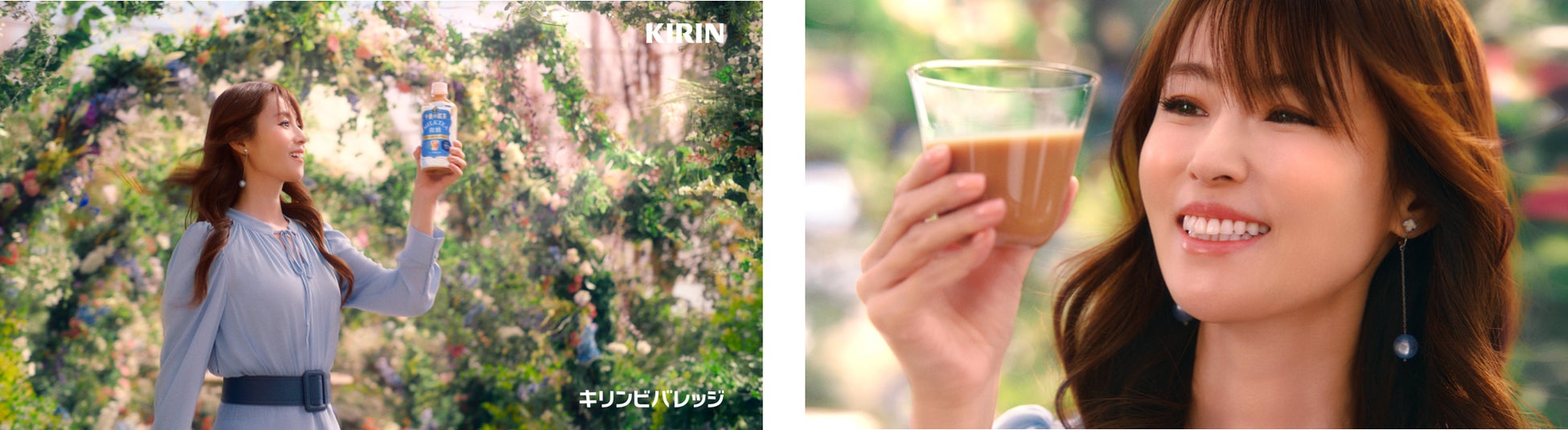 新TVCMには、これまでも多くの「キリン 午後の紅茶」ブランドのイメージキャラクターを務めている女優・深田恭子さんが出演します。新たな出会いの季節に、色とりどりの花々が美しいイングリッシュガーデンで、「キリン 午後の紅茶 ミルクティー 微糖」と深田さんがうれしい出会いを果たす様子を、春のウキウキ感とともに描いています。はじめて味わうシーンでは、“贅沢な味わい。なのに、カロリーは半分”を叶えた商品を体験し、その新しさに“おいしい!”と深田さんの華やかな笑顔も咲き誇ります。本TVCMを通じて、春の訪れとともに誕生する、「午後の紅茶」の新しい微糖ミルクティーの魅力を印象的に伝えていきます。
