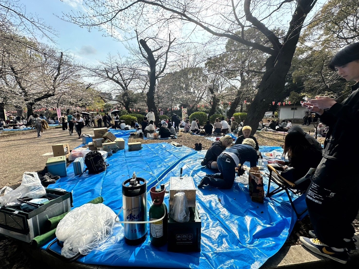 昭和時代の花見スタイル昭和から平成初期にかけて、花見は企業イベントとして定着していました。特に昭和後期、企業の花見は新入社員を中心に場所取り合戦が繰り広げられることが当たり前で、若手社員は早朝から場所を確保し、何時間もブルーシートの上で待機することが花見の風物詩。楽しいはずの花見も、場所取りや幹事の負担が大きく、上司への気配りや無理な飲酒を強いられる場面もあるなど問題も潜んでいたと言えるでしょう。