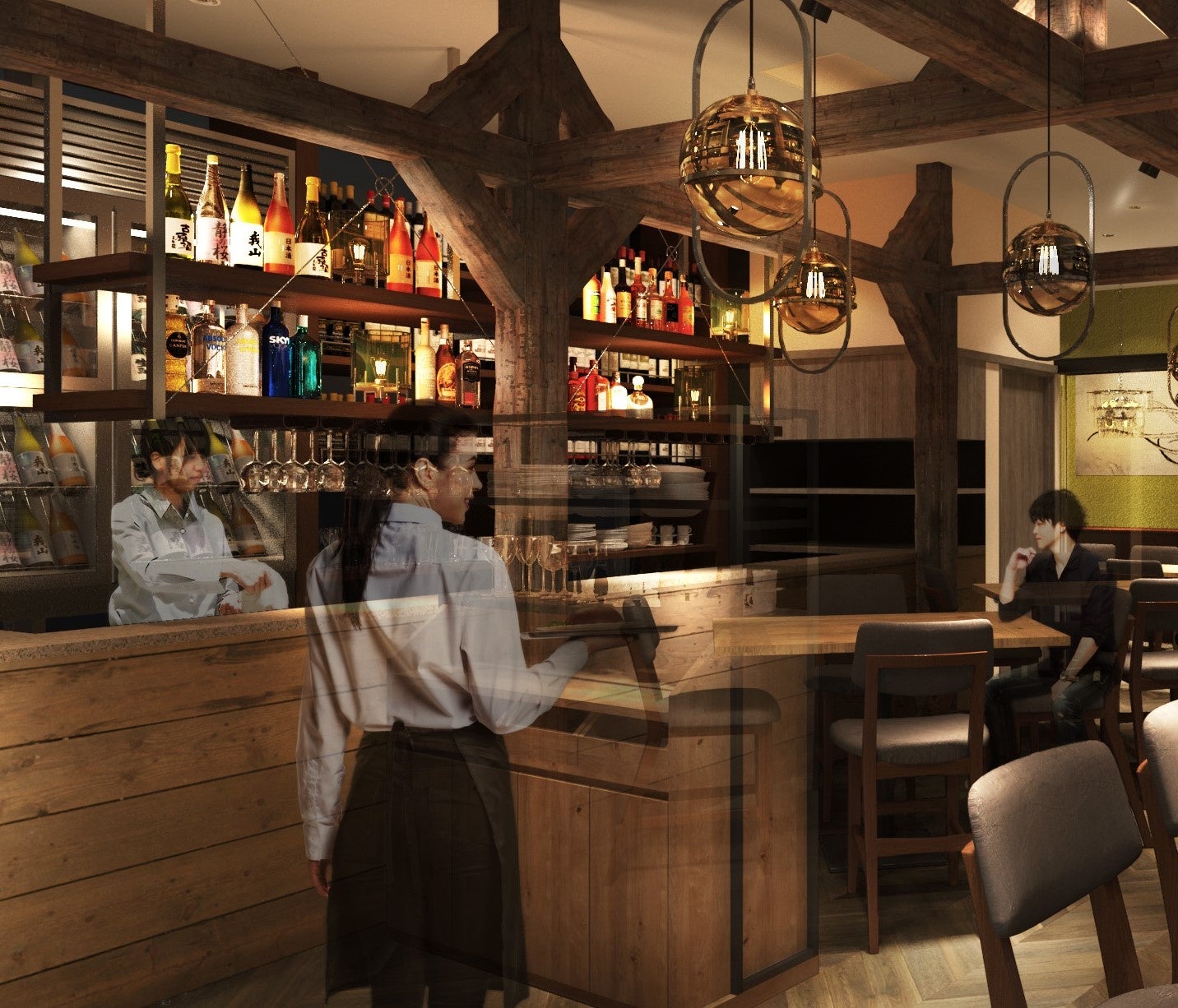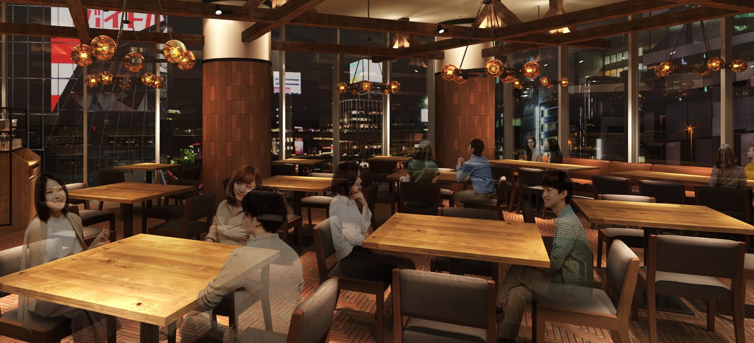 店内は、日本の“アーバンロッジ”をイメージし古材やレンガなどを使用した温かみのある落ち着いた空間で、カウンター席やテーブル席など100席以上を配しています。また、「渋谷ヒカリエ」の6階に位置するので、再開発が進み変化し続ける渋谷の中心街を一望できるロケーションで、デートやお祝いなどの晴れの日の利用もおすすめです。