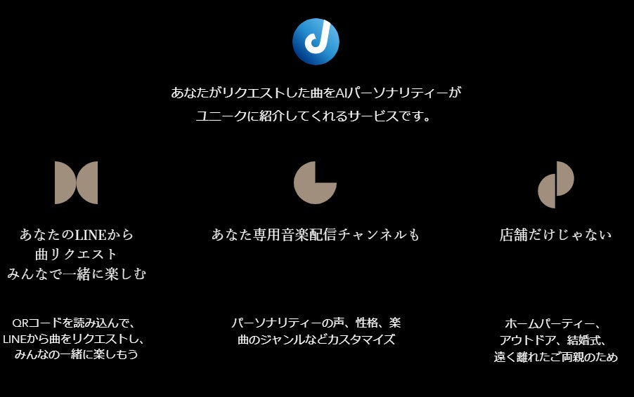 LINEにアーティスト名と曲名を送るだけでAIがパーソナリティーとして登場し、リクエスト曲に気の利いたMCを添えて再生。