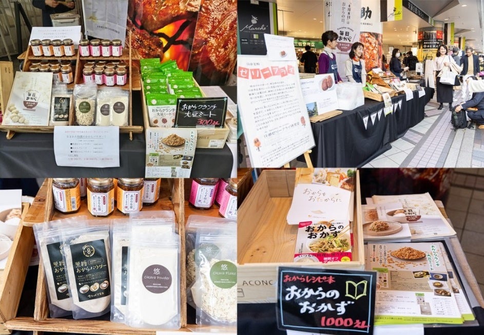 交通会館マルシェ内にて、おからパウダーのよりどりマルシェ他、きらず揚げ、おからを使ったスィーツやお菓子などの販売を行います。