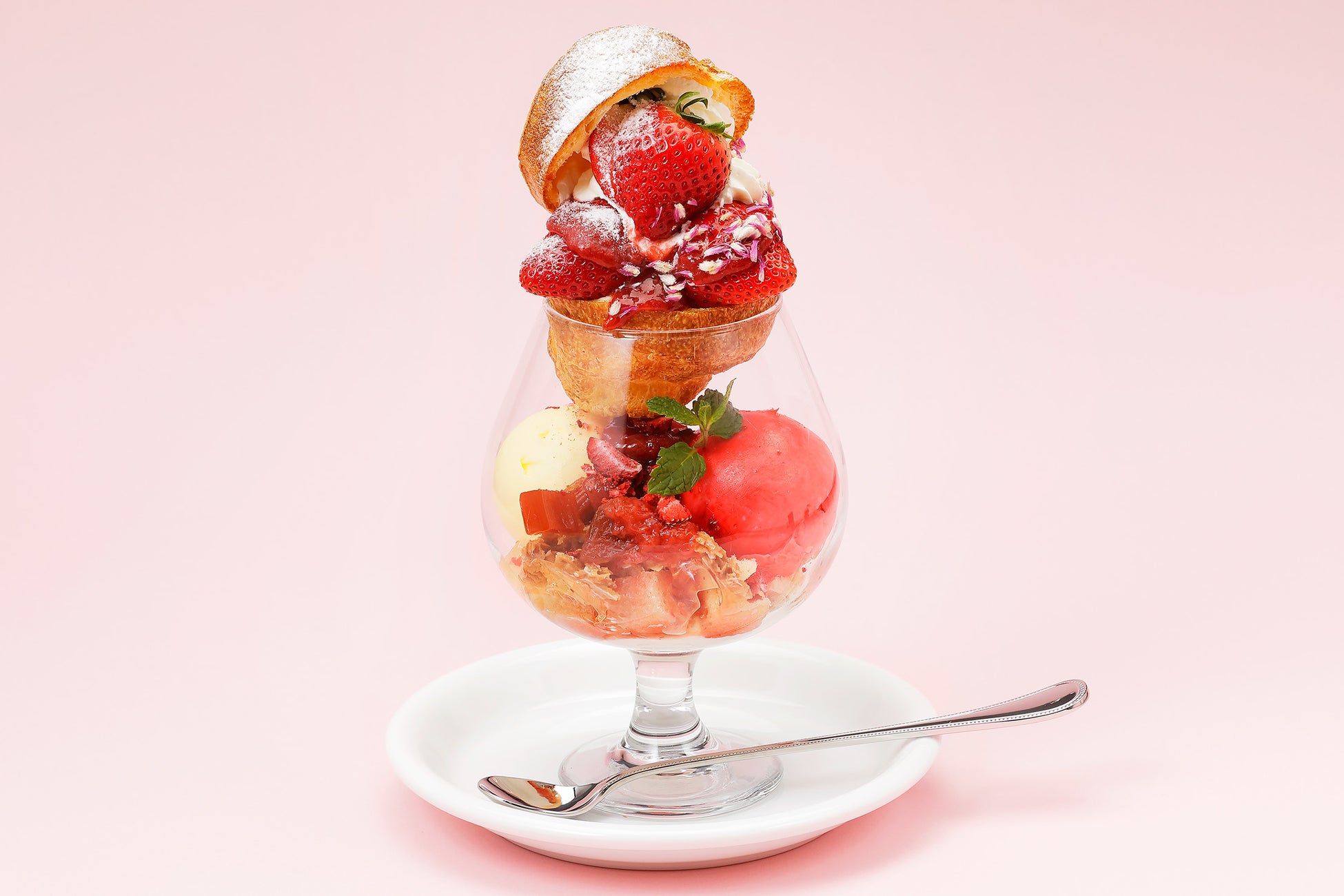 【ゲートタワー店限定】「あまおう苺とポップオーバーのパフェ~苺とルバーブとラベンダーのコンポート~」2,200円