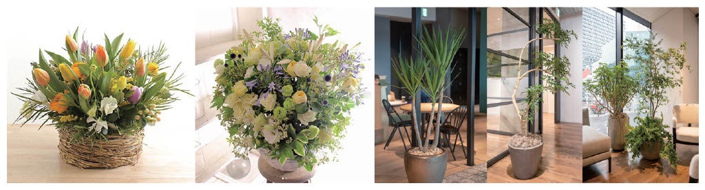 ・花、グリーンアレンジメント、観葉植物、アーティフィシャルツリーなどお客様のご要望や空間に合わせたご提案が可能です
