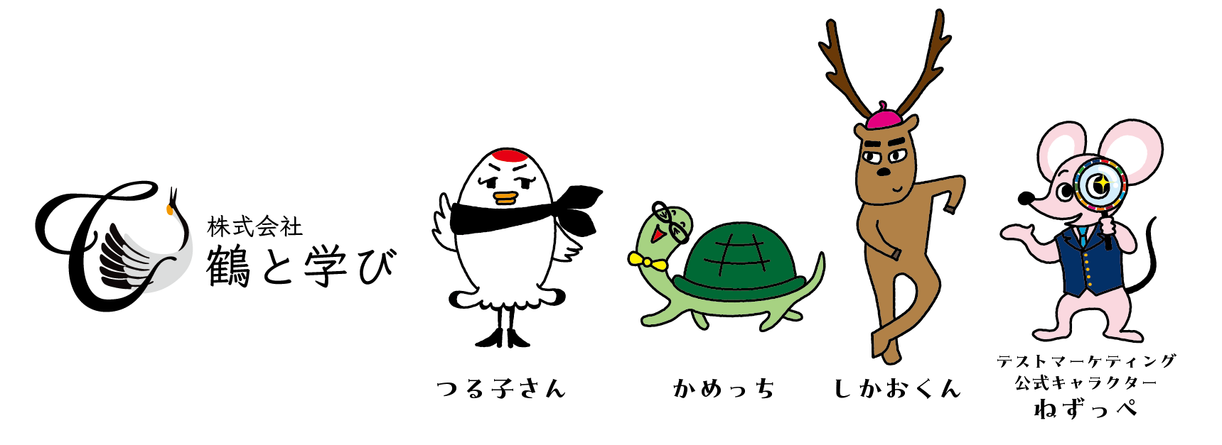 鶴と学びには、【つるこさん】【かめっち】【しかおくん】という縁起のいい動物たちを模した公式キャラクターが3人います。そしてさらに今回テストマーケティングを担当する【ねずっぺ】が登場しました。ねずみは繁殖能力が高いことから、子孫繁栄や家運隆盛など繁栄の象徴として、古来より縁起のよい動物として親しまれています。テストマーケティングした商品たちが大いに繁栄して羽ばたいていくことを願って、今日も【ねずっぺ】は「チューもく!!」と叫びます!