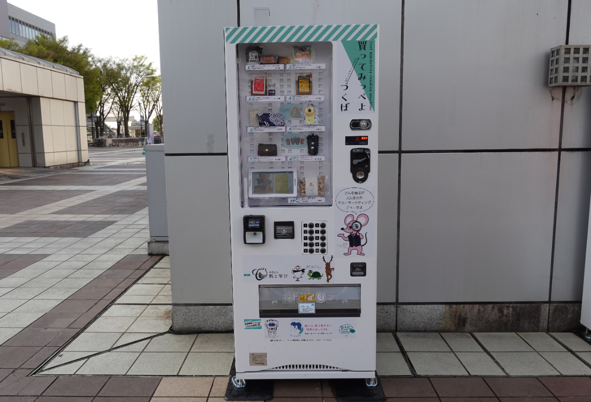 ありがたいご縁で、つくばエクスプレス「つくば駅」前のつくばセンター広場の一画に自動販売機を置かせていただけることになりました。駅を利用される方はもちろん、イベントなども頻繁に開催される場所で、若者から子育て層、ご近所の方が行き交うこの場所でテストマーケティングできるというのは、当初の苦労を跳ねのけるような幸運でした。