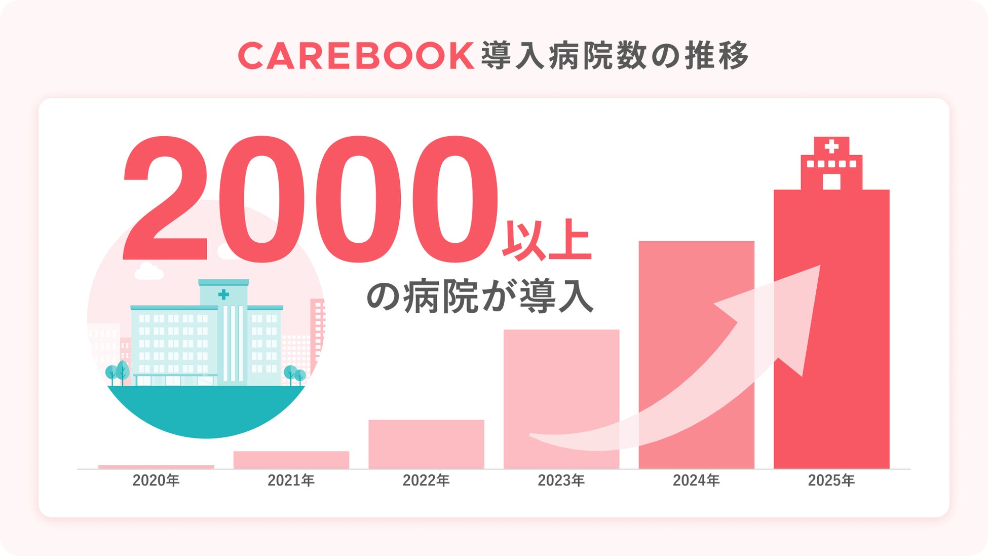 お陰様で多くの医療機関の皆様にCAREBOOKをご活用いただき、昨年9月にはご利用病院数が2,000を突破いたしました。また、病院のみならず、訪問診療所、訪問看護ステーション、介護施設などへの連携シーンでもご利用いただけるようになっております。