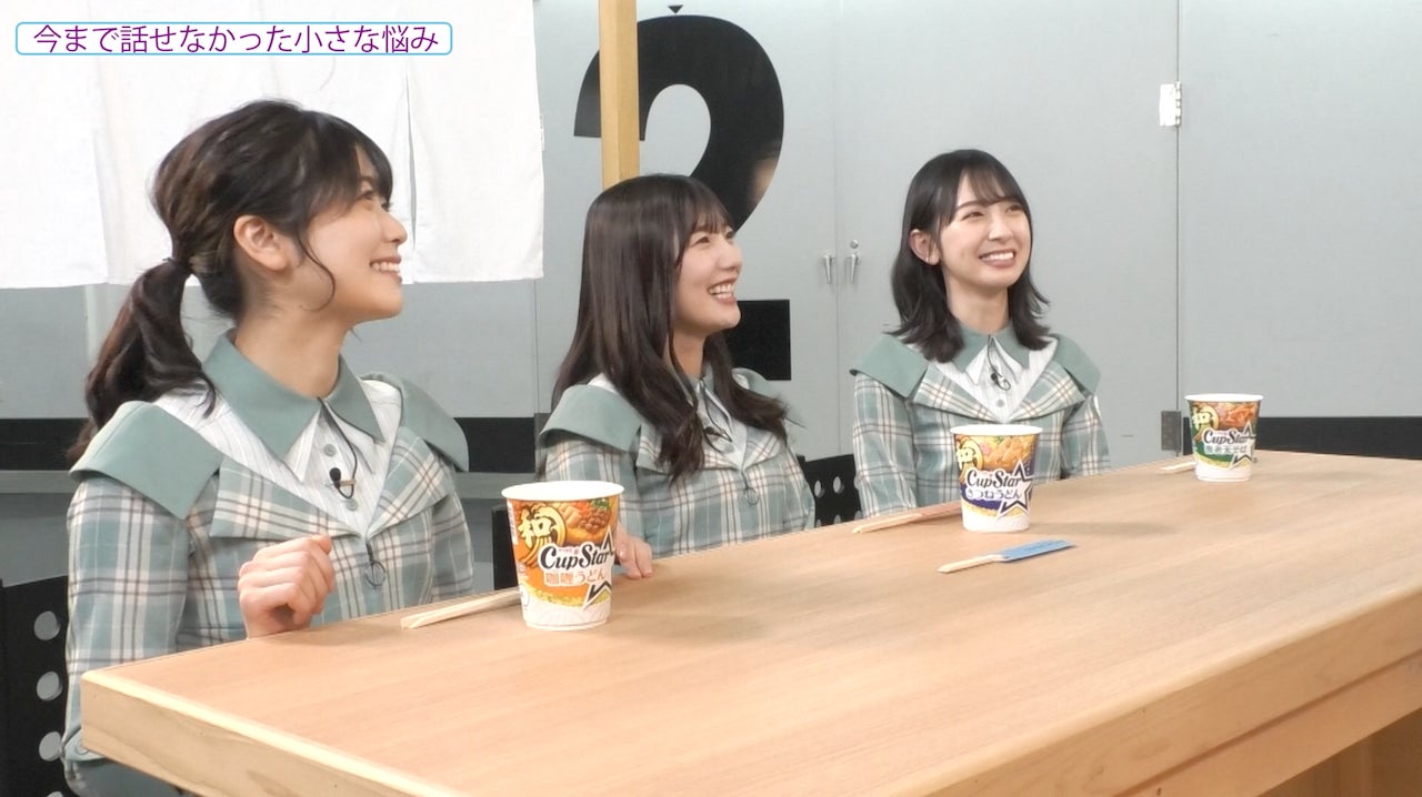 Vol.1には加藤史帆さん、金村美玖さん、河田陽菜さん、丹生明里さんが出演。加藤さんは現在実施中のプレゼントキャンペーンで当たるオリジナルキャップ「CAPSTAR」を着用し、3人の前でゴルフの腕前を披露するというシュールな場面から動画がスタートします。「しし庵」ではお三方にカップスターの和風シリーズ、海老天そば・きつねうどん・カリーうどんを召し上がっていただきながら、グループをめぐる話題など、多彩なテーマによる緩いおしゃべりが繰り広げられます。