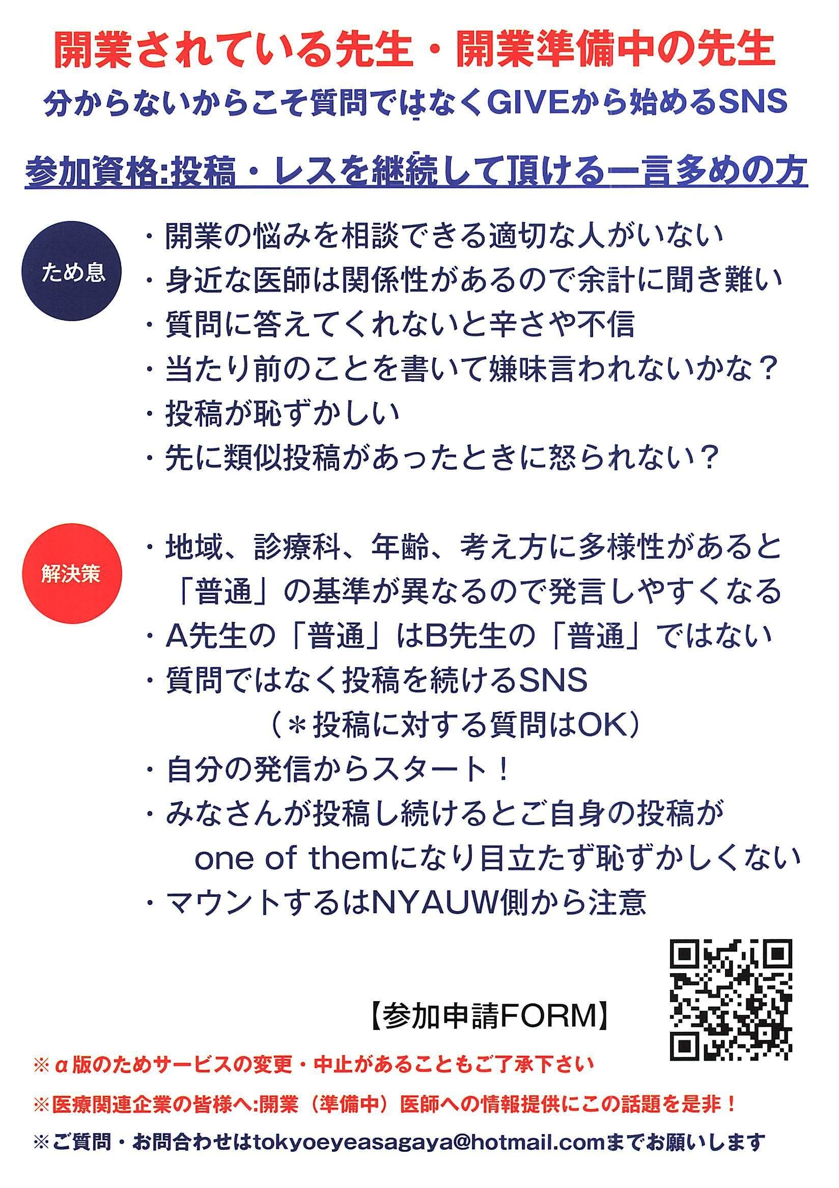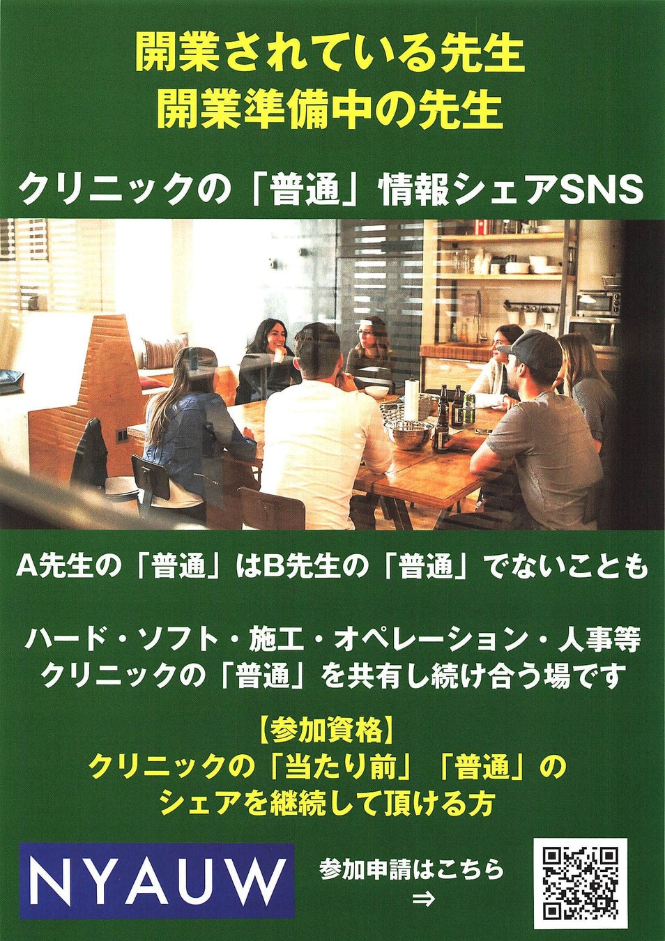 そういったときに医師同士が互助的にクリニックの開業・運営の「普通」をシェアし合うSNSの存在をお伝えいただきたいのです。