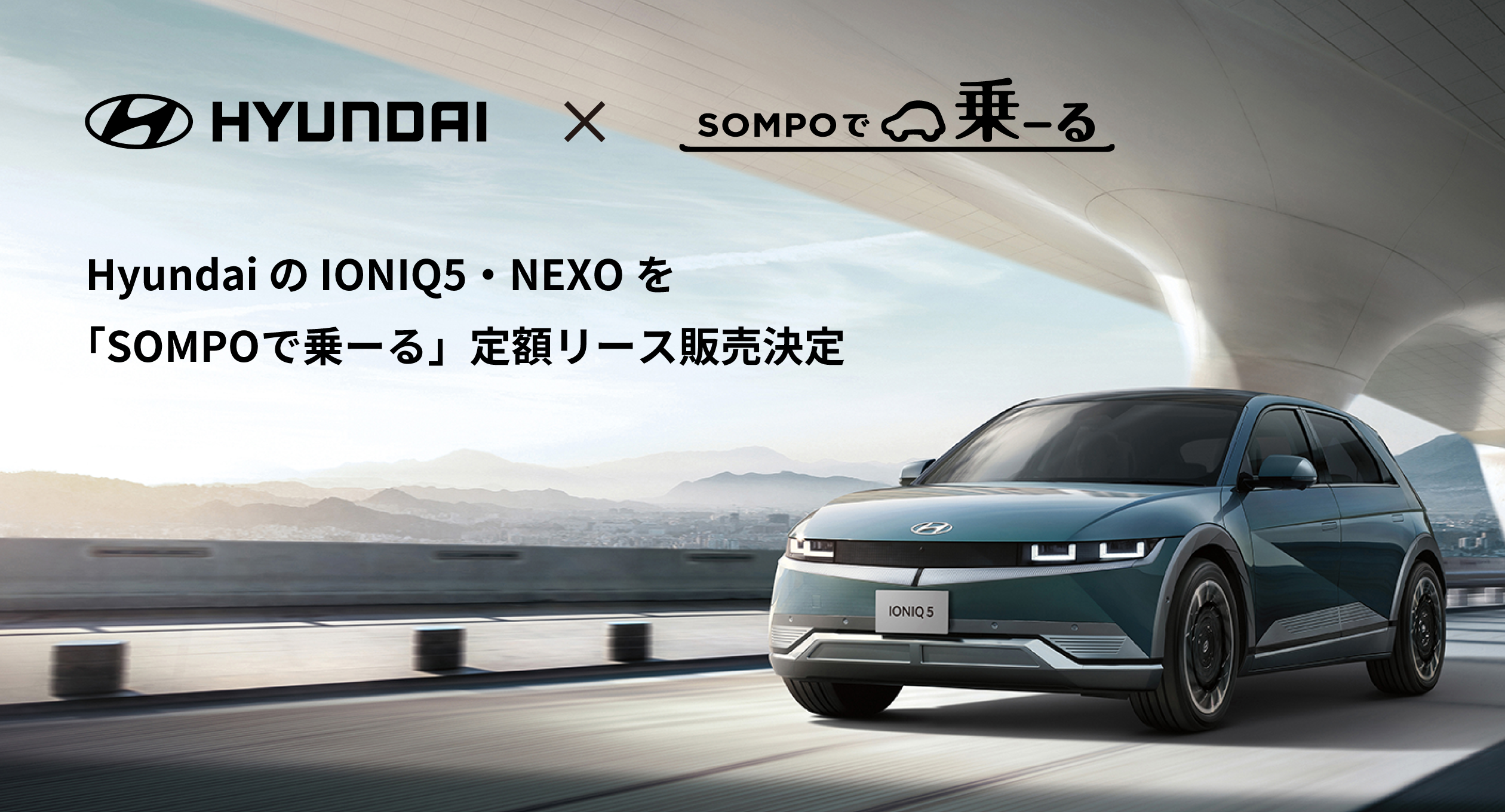 株式会社DeNA SOMPO Carlife(本社:東京都渋谷区、代表取締役社長:久保田 和史)が提供するクルマ定額サービス※1「SOMPOで乗ーる」( https://sompo-de-noru.jp/ )は、日本に参入した韓国の自動車メーカーであるHyundai Mobility Japan 株式会社(本社:神奈川県横浜市西区、以下、Hyundai)の電気自動車「IONIQ 5(アイオニック ファイブ)」と、燃料電池自動車「NEXO(ネッソ)」を日本のカーリースで初めて販売することが決定しました。