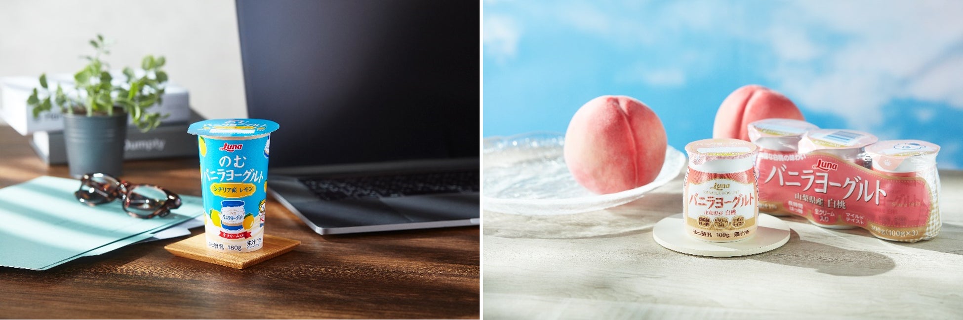 また、『バニラヨーグルト』から『バニラヨーグルト 山梨県産 白桃』が、2023年2月27日(月)より全国で発売中です。