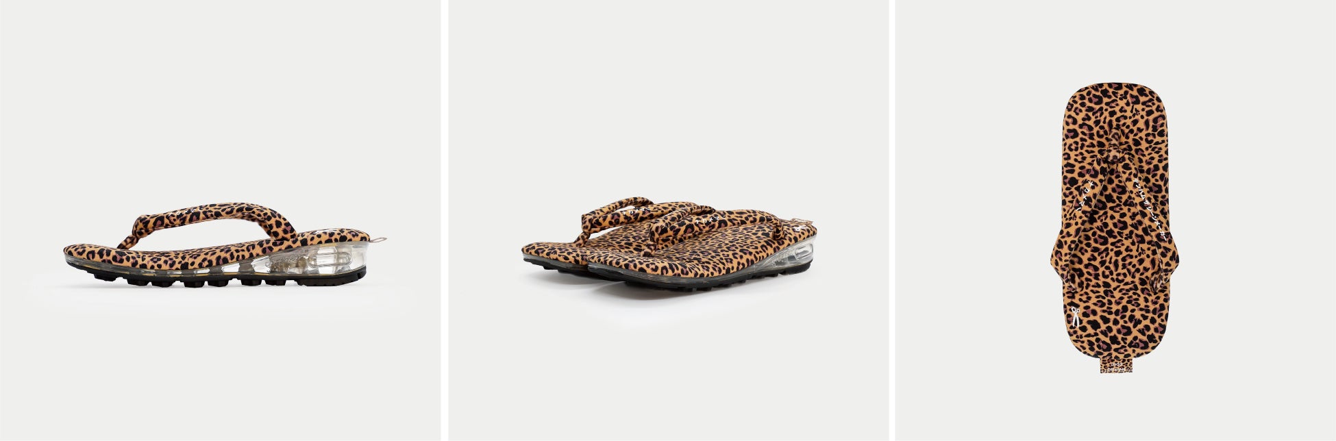 アッパー部分全てにオリジナルのレオパード柄を纏ったインパクトのある一足。