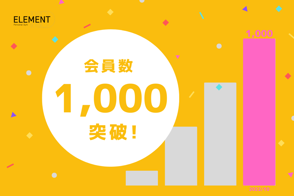 パーソナルジム「ELEMENT」、サービス提供開始2年半で会員数1,000人突破!会員数1,000人突破を記念して、期間限定キャンペーンを開催