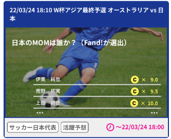 1. 海外サッカー12リーグ/Bリーグ/NBA/卓球の注目選手や有名チームの様々な活躍予想クイズでコインを稼ごう!3/24,29のサッカーW杯最終予選日本vsオーストラリア戦、ベトナム戦にも対応!