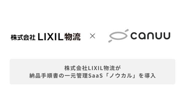 軒先情報・納品手順(以下、納品カルテと呼ぶ)のクラウド化により配送業務の標準化を目指す株式会社canuu(以下、canuu)が提供する納品手順書の一元管理SaaSアプリ「ノウカル」が、LIXILグループの一員として、同グループが製造する住宅設備機器や建材等の物流を担う専門企業である株式会社LIXIL物流(以下、LIXIL物流)に導入されたことをお知らせします。