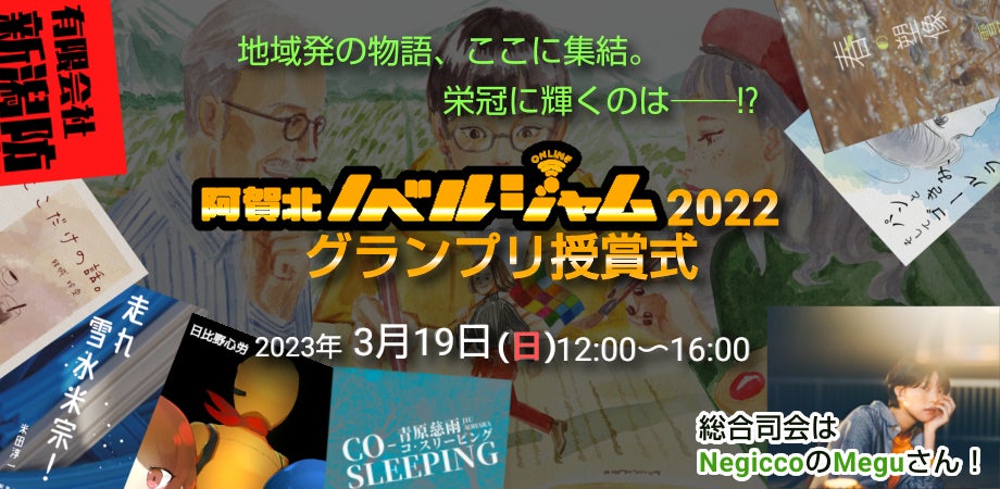 3年目を迎えた阿賀北ノベルジャムではこれまでで最多となる7作品が完成。アンバサダーを務めるNegiccoのMeguさんを総合司会にお迎えし、グランプリならびに各賞を発表します。また、運営学生が制作した過去3回の阿賀北ノベルジャムで完成した18作品に登場する舞台を紹介する地図もできあがりました! あわせてお披露目致します。