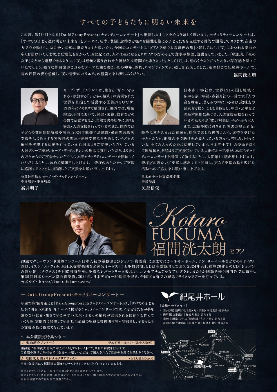 ~すべての子どもたちに明るい未来を~Daiki Group 第7回チャリティーコンサートをピアニスト福間洸太朗さんをお迎えして、開催致します