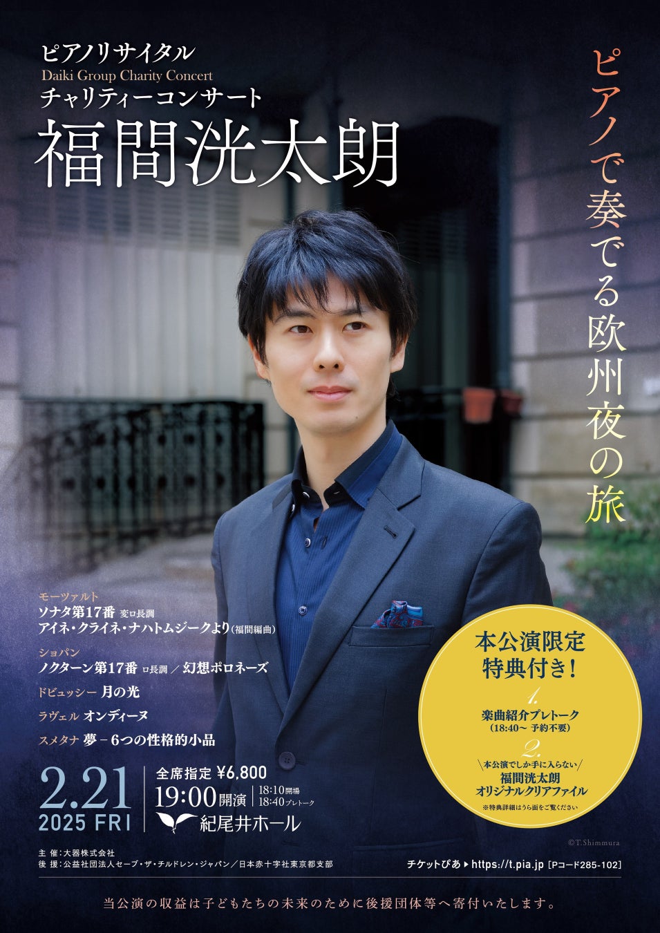 Daiki Group presents Charity Concert 2025 ピアノリサイタル 福間洸太朗『ピアノで奏でる欧州夜の旅』 |