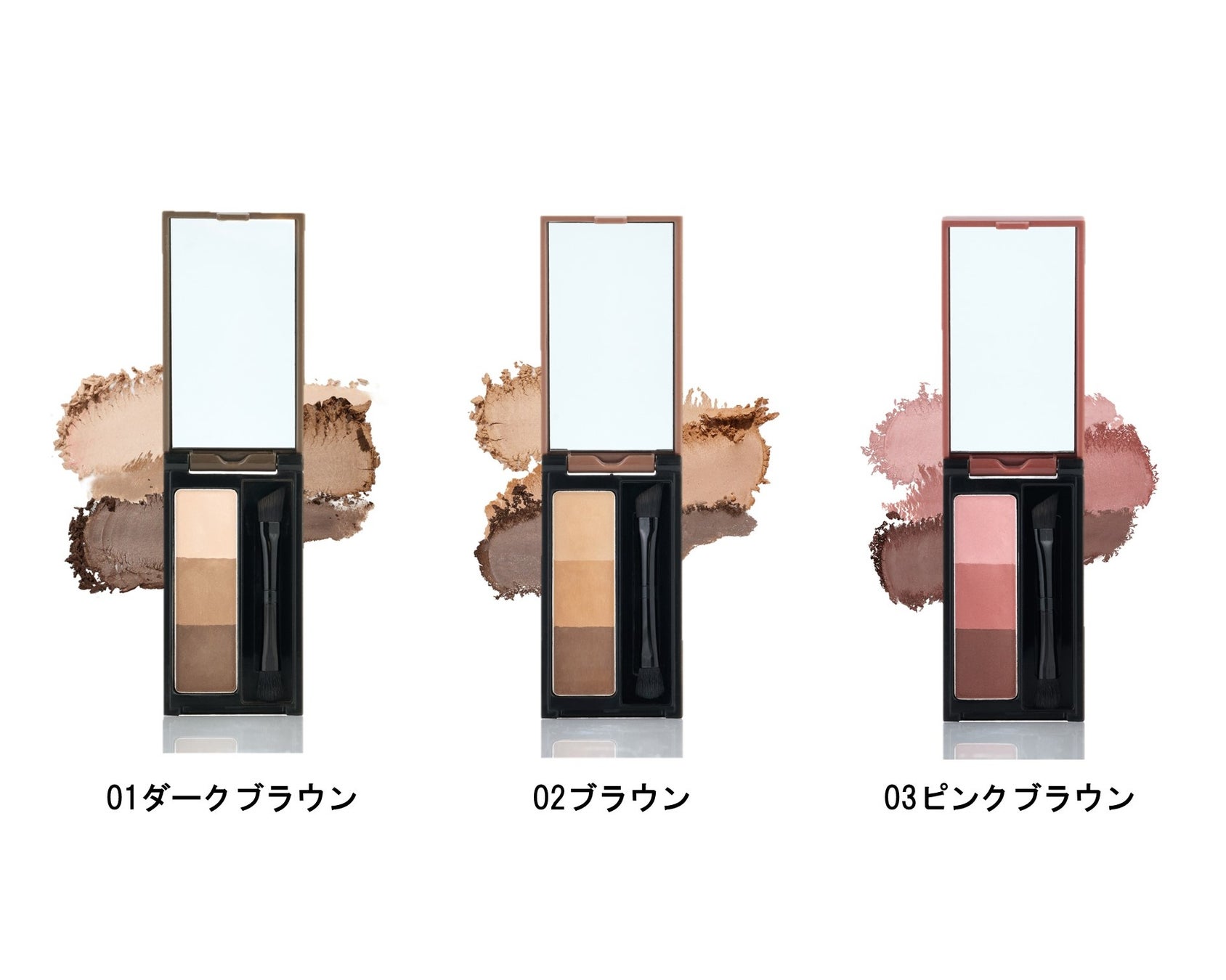 髪色やなりたい印象に合わせて選べる3色展開のアイブロウパウダー。自然なグラデーション眉を簡単に作れる専用ブラシ付き。柔らかな質感が春の軽やかな雰囲気を引き立てます。