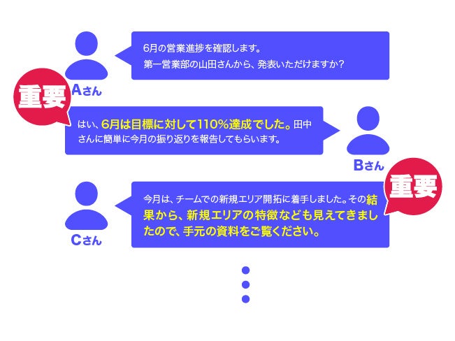「議論が白熱し、会議の重要な発言をメモできていなかった!」「後から、どこが大事なポイントだったかわからない!」という後悔はもうありません。