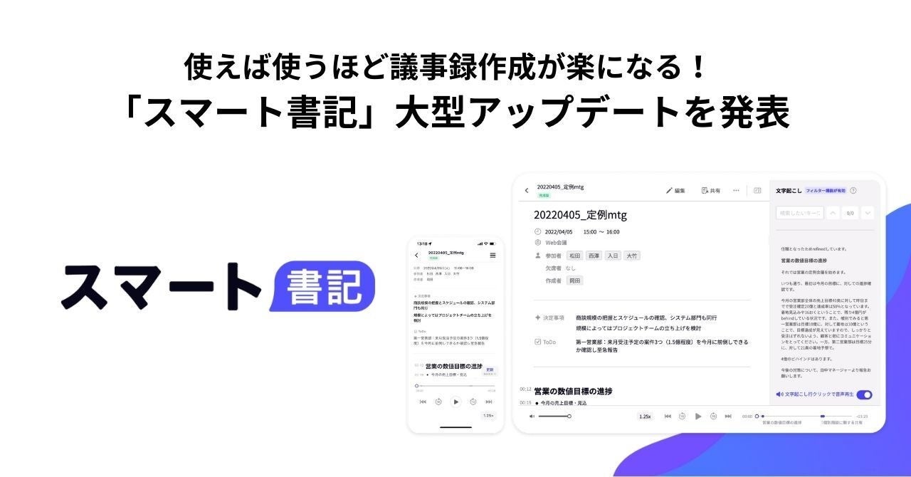使えば使うほど議事録作成が楽になる!「スマート書記」大型アップデートを発表