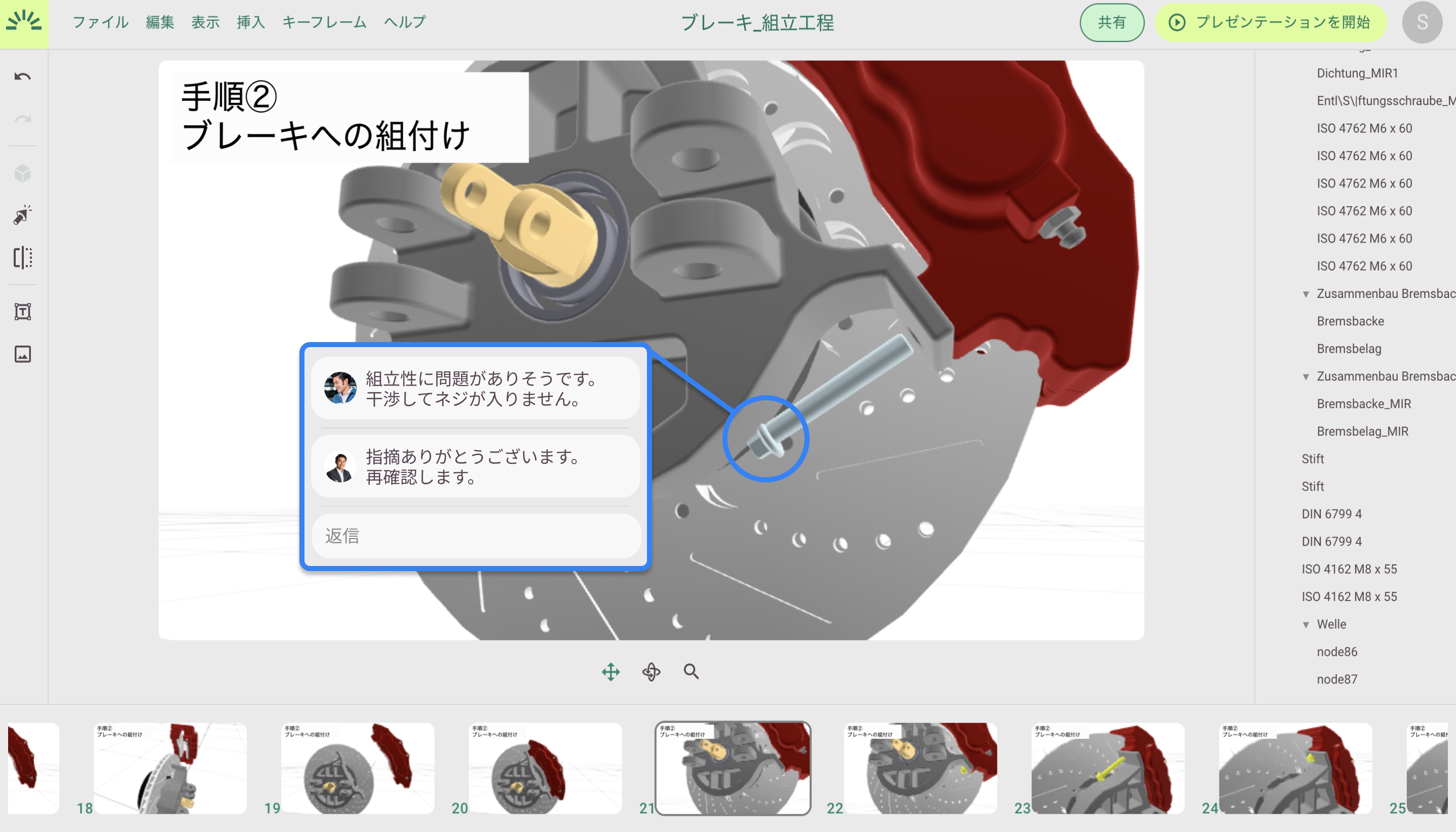 Sceneは3D CADデータをそのまま読み込み、立体的な手順書を作成できるツールです。直感的に操作できるため、3Dツールに慣れていない生産・製造部門でも簡単に使えます。