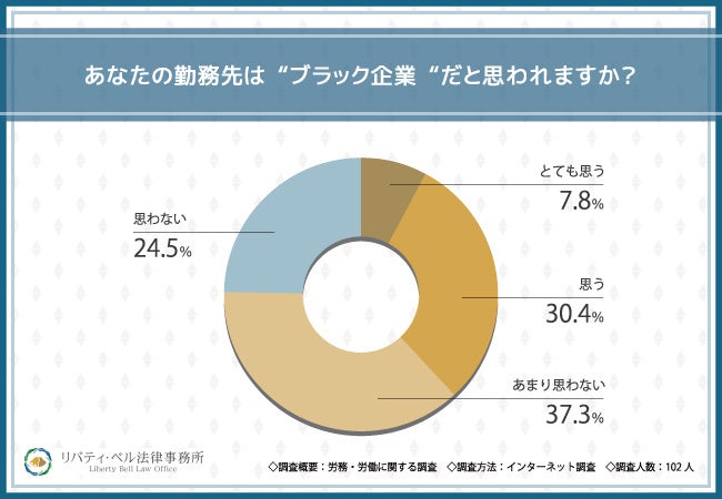 【人事労務の相談ならリバティ・ベル法律事務所】勤務先がブラック企業と思う方の割合は38.2%!理由なども調査