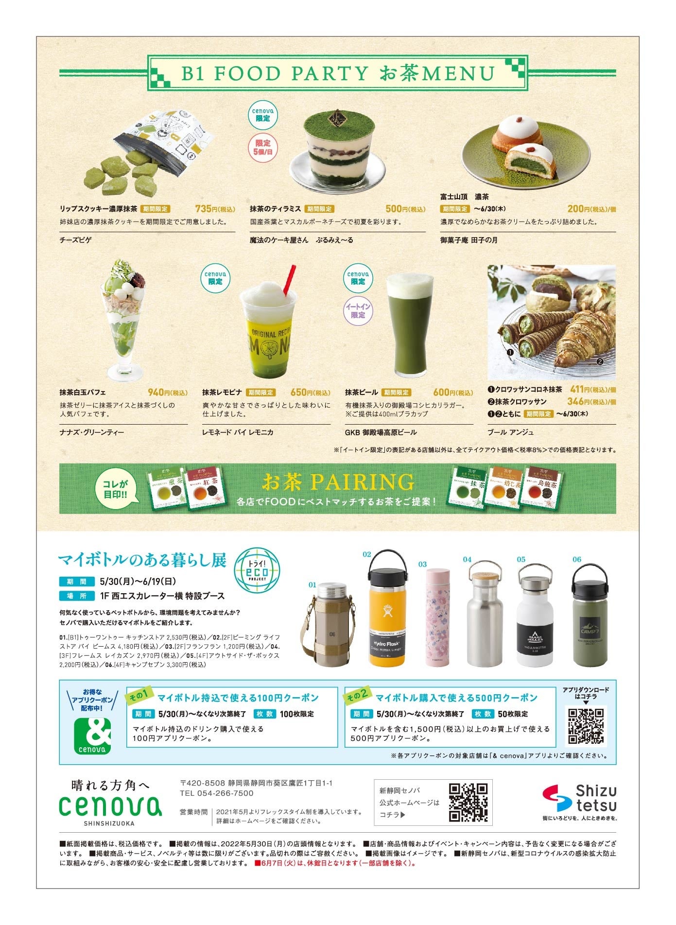 静鉄プロパティマネジメント株式会社(本社:静岡市葵区鷹匠、代表取締役社長:小坂 征広)が運営管理する「新静岡セノバ」(所在:静岡市葵区鷹匠、以下セノバ)は、第3回目となる『茶祭 CHA-SAI』を2022年5月30日(月)から6月19日(日)に下記の通り開催します。
