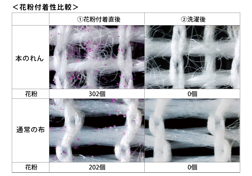 繊維にクリンプ(縮れ)があるため、通常の生地よりもより多くの花粉やハウスダストをキャッチすることができます。