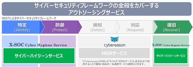 このたびクロスポイントソリューションが提供する「X-SOC Cyber Hygiene Service」は、国内大手企業へのサービ ス提供で培ったサイバーハイジーンサービス(特定・防御・復旧)のノウハウを、サイバーリーズン・ジャパンが提供する EDR 製品「Cybereason EDR」や「X-SOC MDR サービス」「Cybereason MDR」と掛け合わせることで、非管理端末 の特定から、セキュリティインシデントの防御、検知、対応、復旧までを一気通貫でサービス提供することができます。
