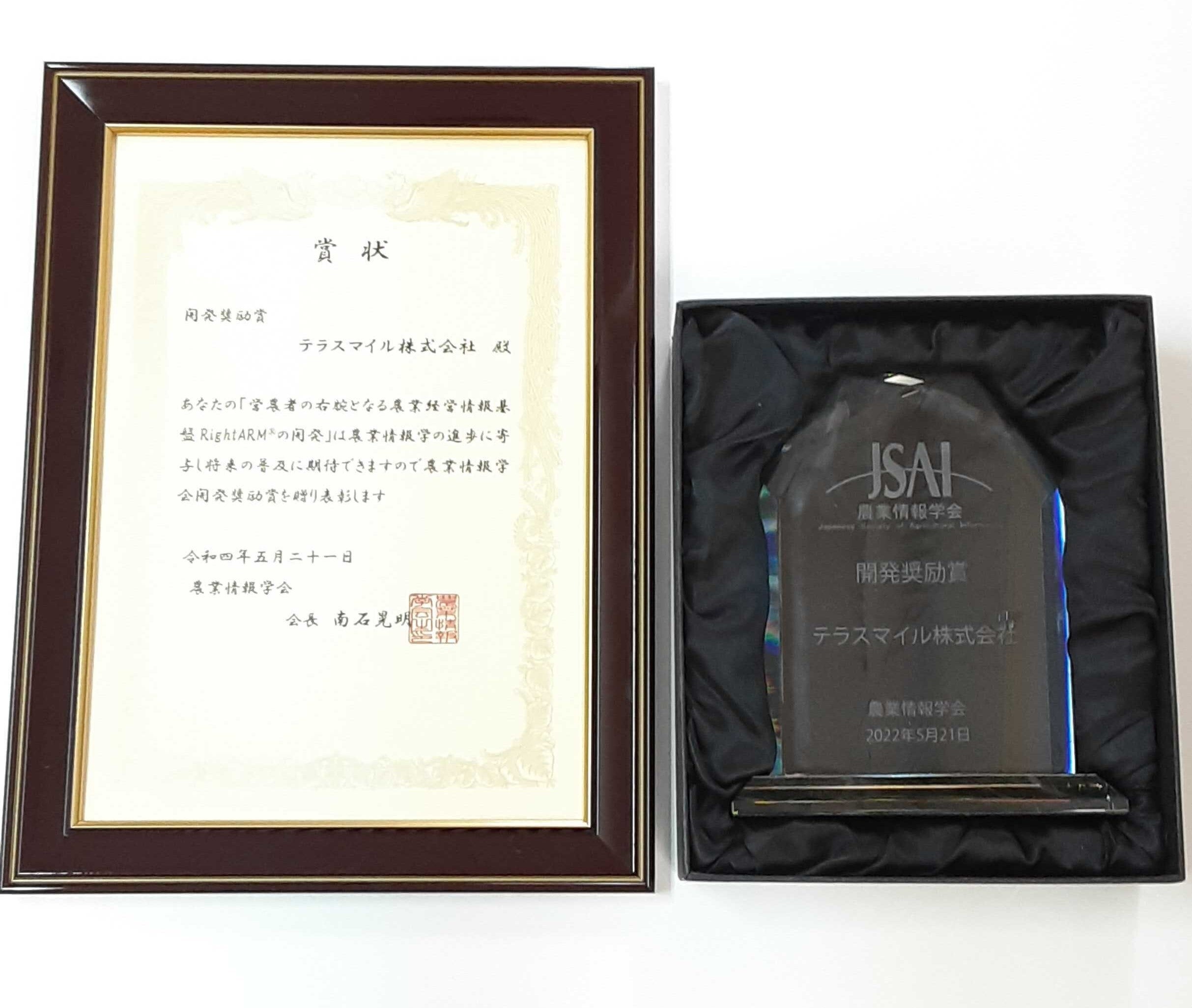 テラスマイルの営農クラウド「RightARM」が農業情報学会にて学会賞(開発奨励賞)を受賞